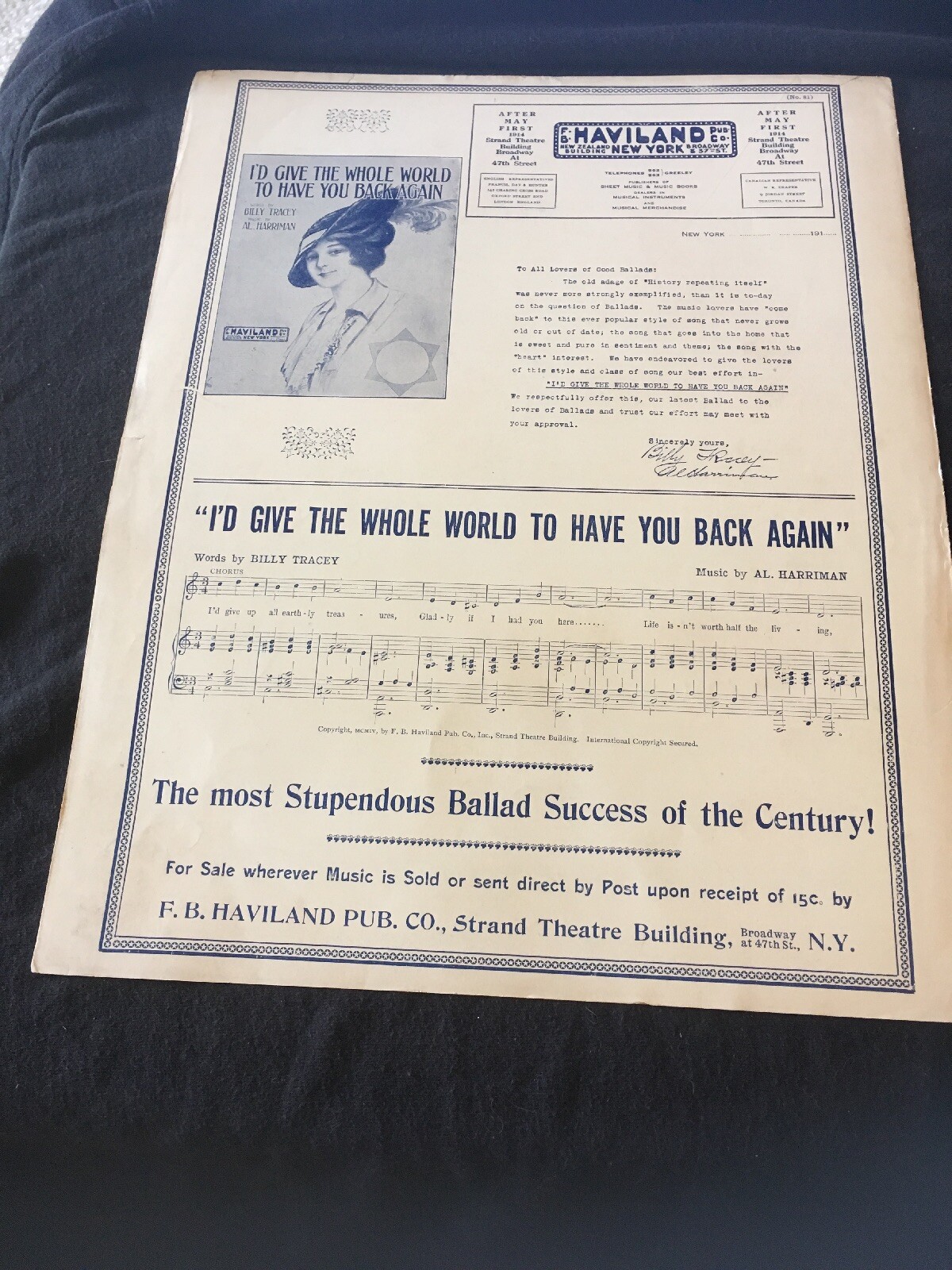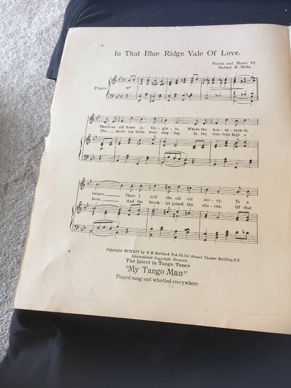 Vintage Sheet Music In That Blue Ridge Vale of Love , 1914 Halsey K Mohr