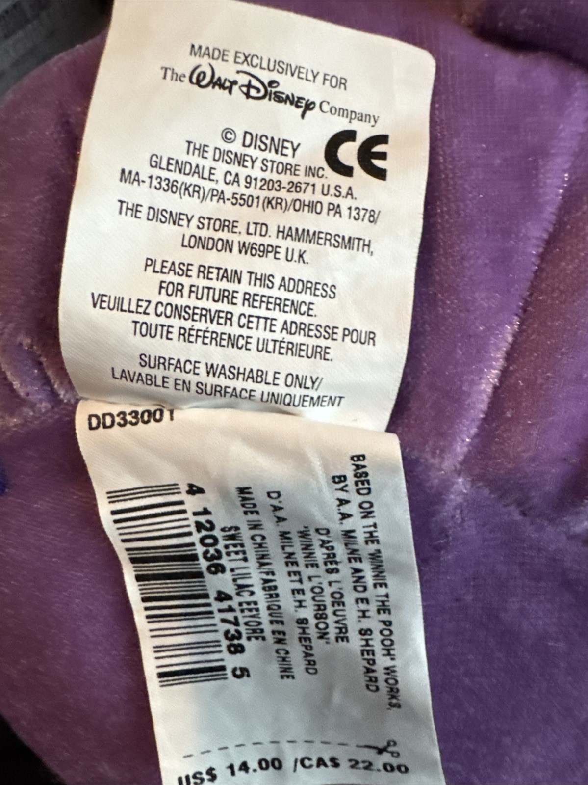Disney Store Sweet Lilac Eeyore 10 Stuffed Plush Embroidered Eyes Purple