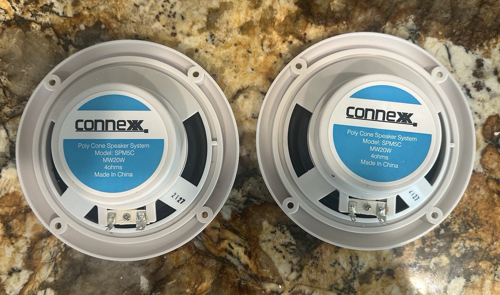 Pair of Connexx SPM5C 5.25 20 Watts Polycone Audio White Marine RV Speakers