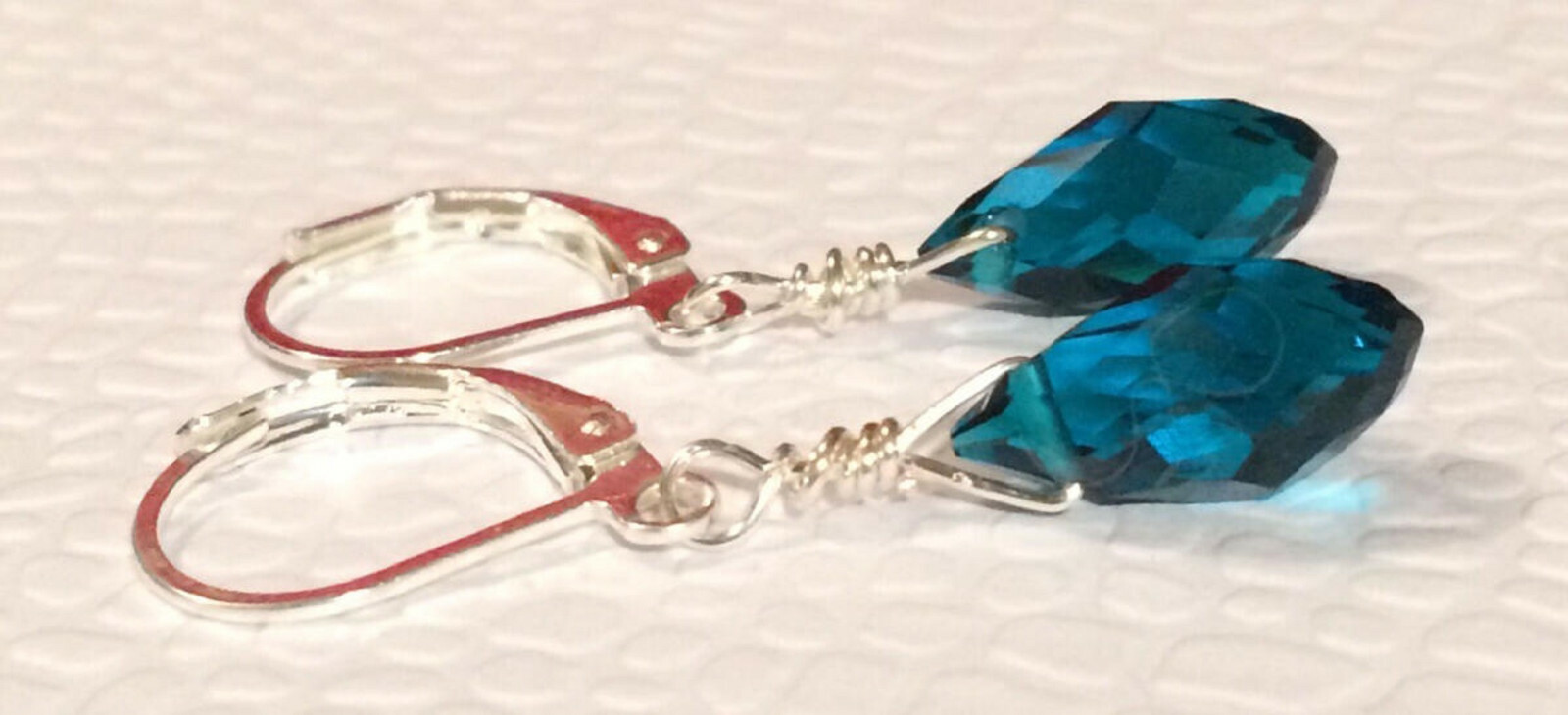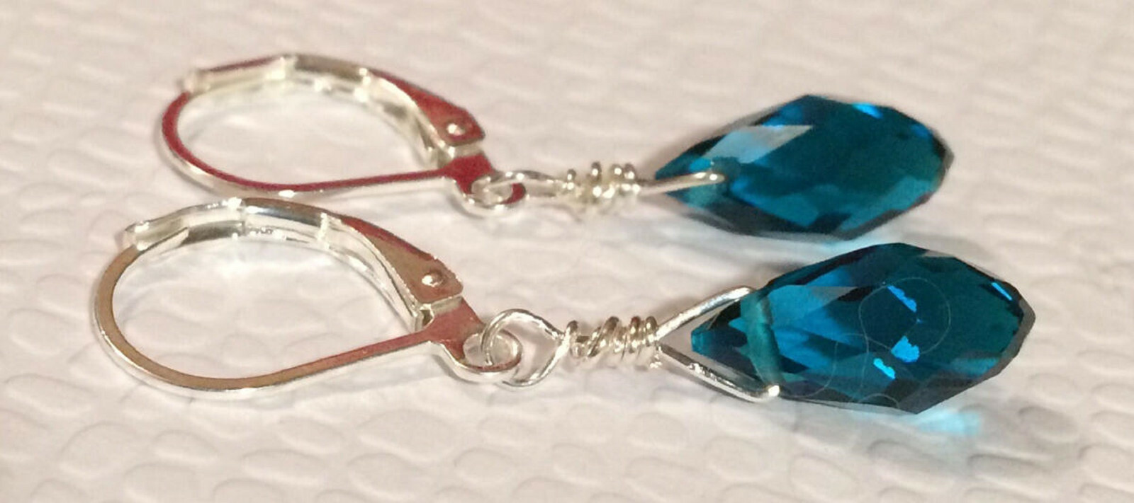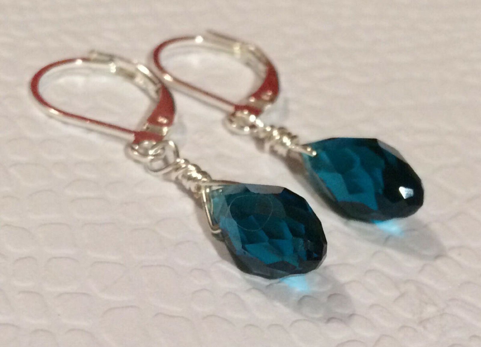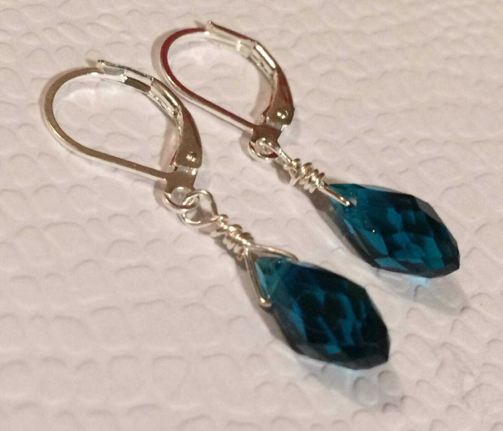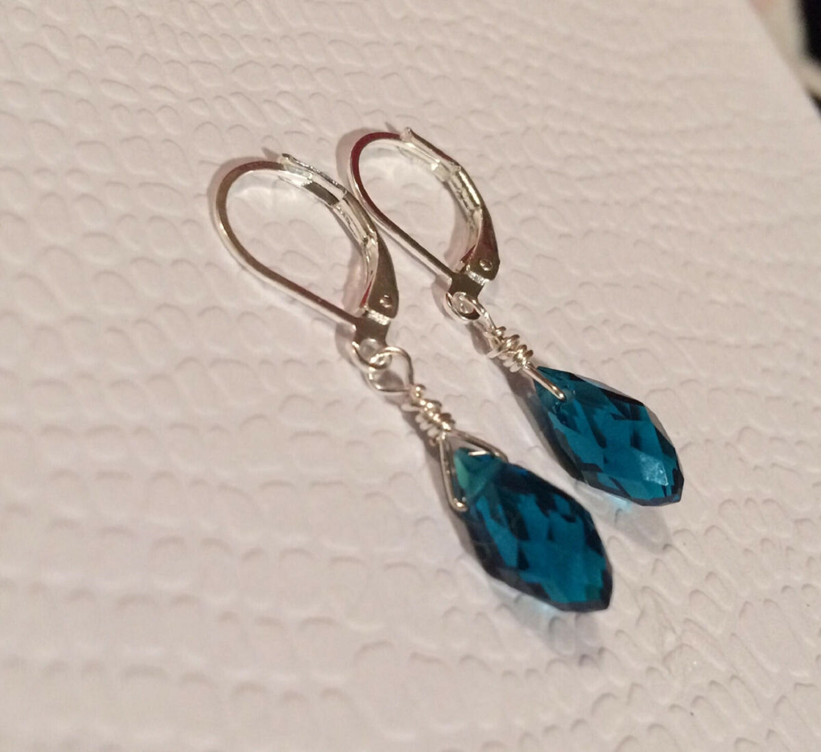 как выглядит Peacock Blue Quartz Briolettes Sterling Silver Plated Leverback Earrings фото