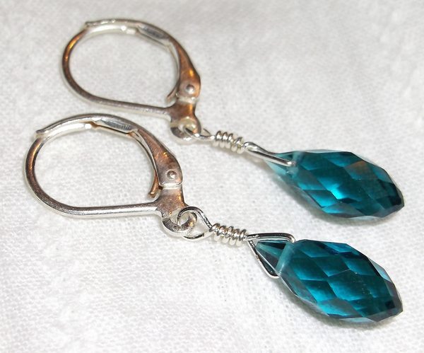 Peacock Blue Quartz Briolettes Sterling Silver Plated Leverback Earrings