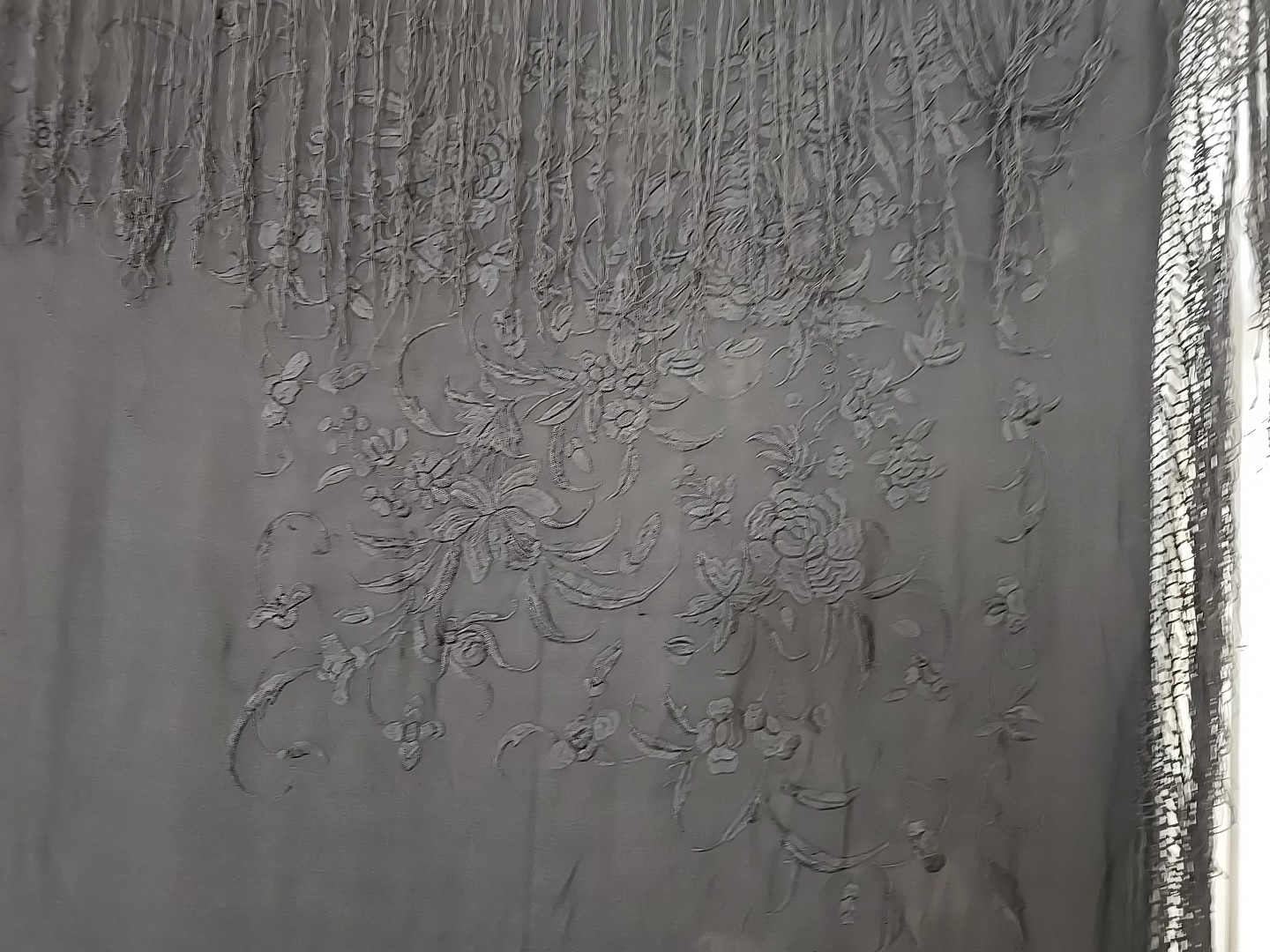 как выглядит Antique Vintage Brown Silk Embroidery Large Square Piano Shawl Wrap Fringe Tasse фото