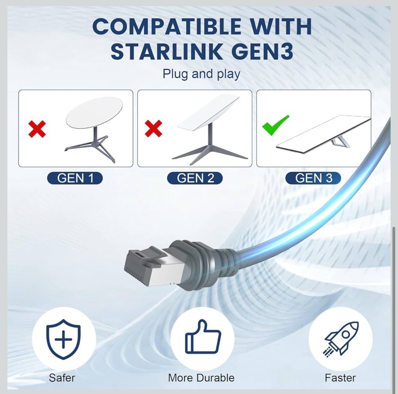 Starlink Gen 3 Cable 100FT, Waterproof Starlink Cable for Rectangular Satellite,