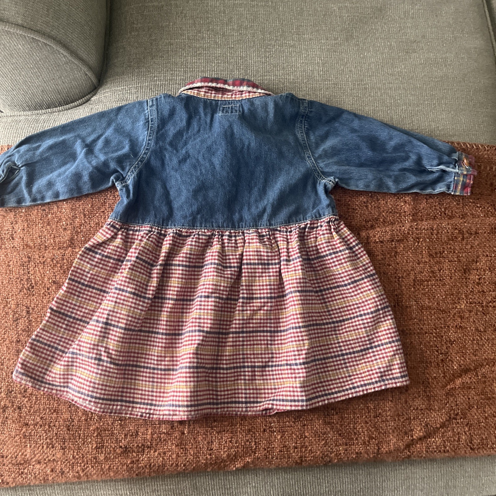 Vintage 90 s Baby Gap Denim/ Plaid Dress Size 12-18 Mo. Wood Buttons Collar EUC