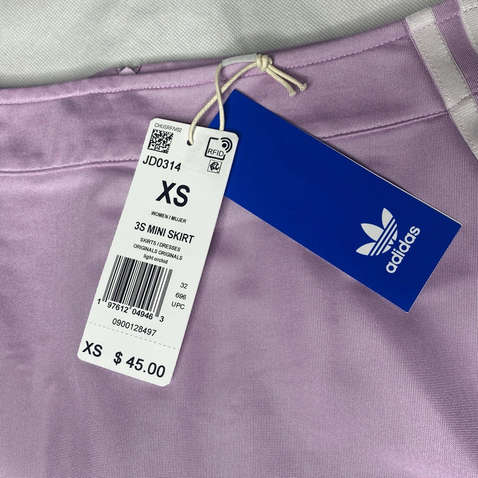 как выглядит Adidas Original 3 Stripe Mini Skirt Womens Size XS Light Orchid New JD0314 фото