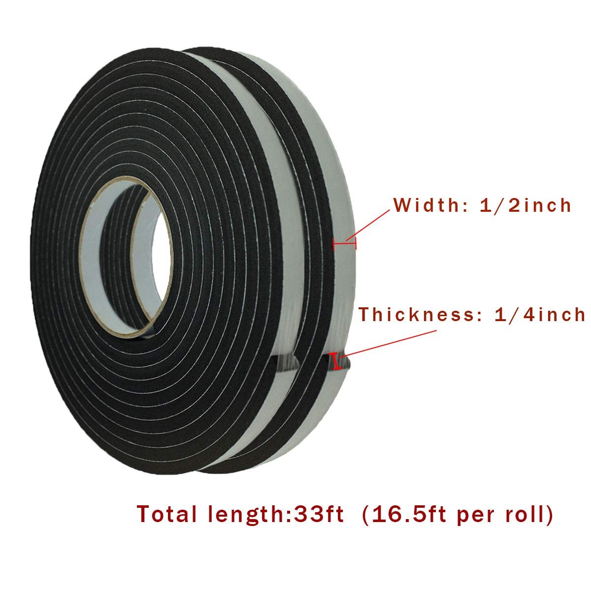 Adhesive Foam Tape Weather Tape 1/4 Inch Thick x 1/2 Inch Wide,2 Rolls