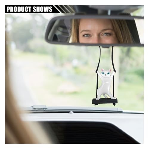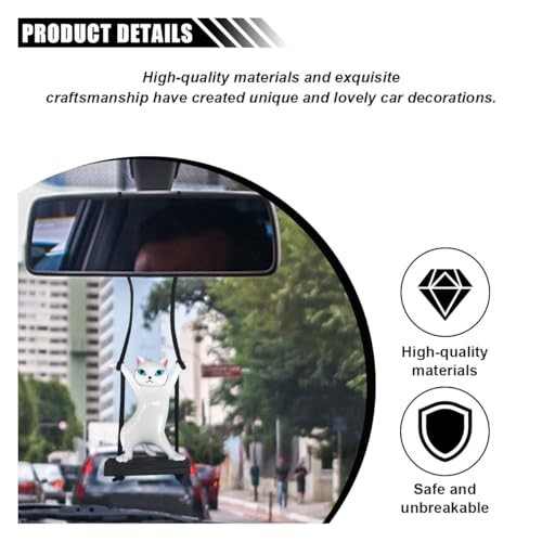 Cute Cat Car Hanging Ornament, Swing Rear View Mirror Charm, Auto Mirror White