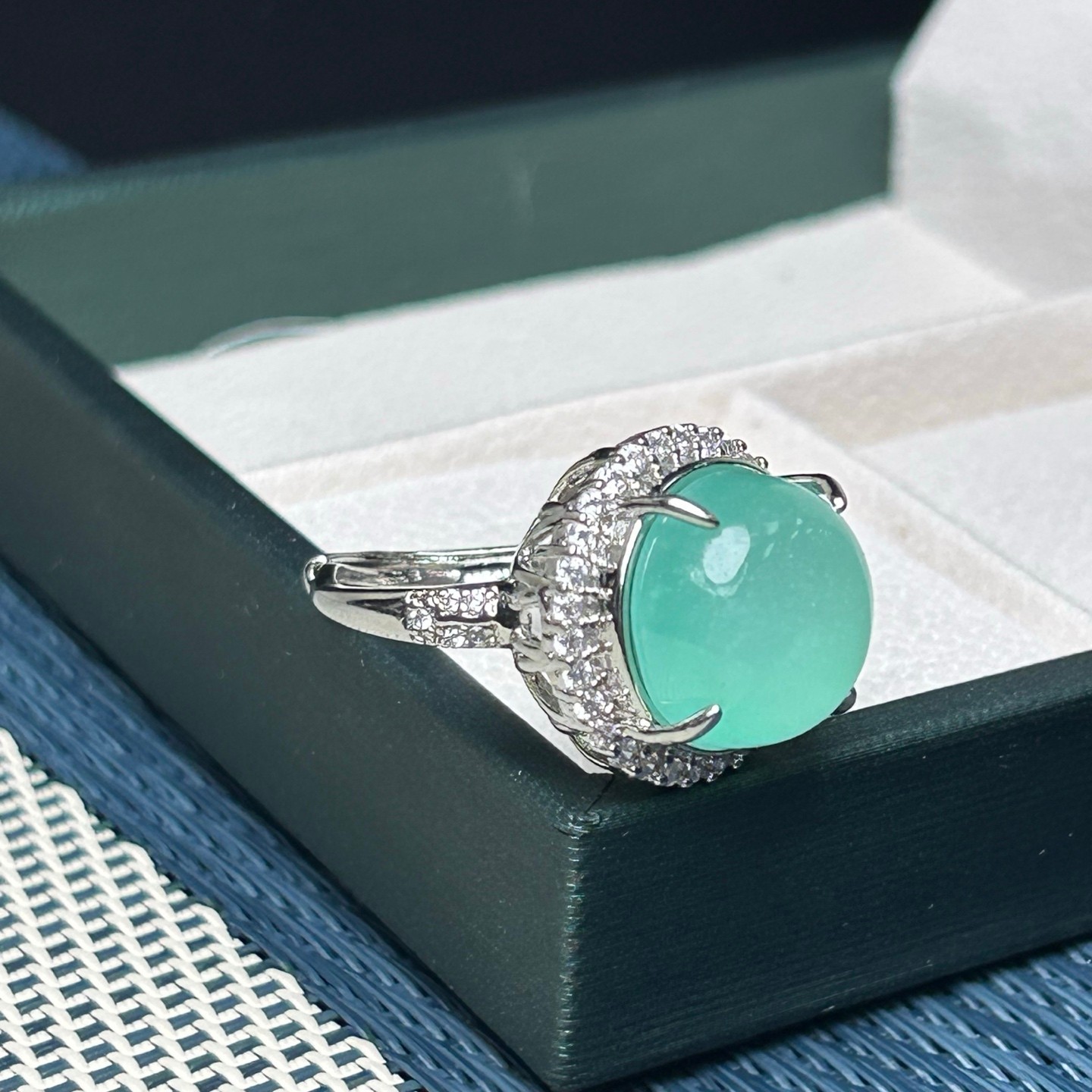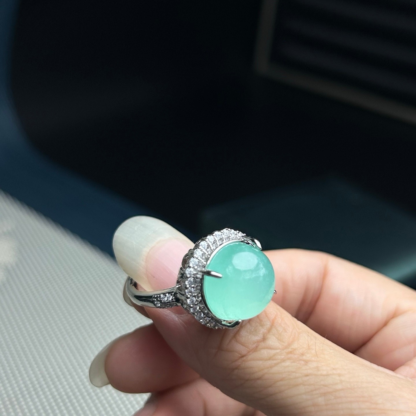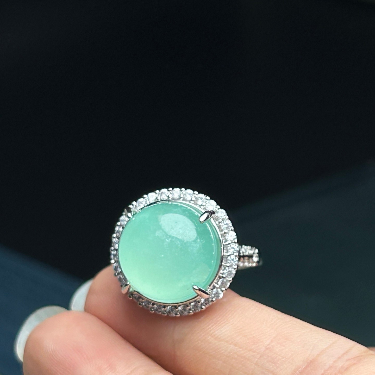 как выглядит Nature inlay Ice Green Burmese Jade Jadeite Amulet Women Egg Ring фото