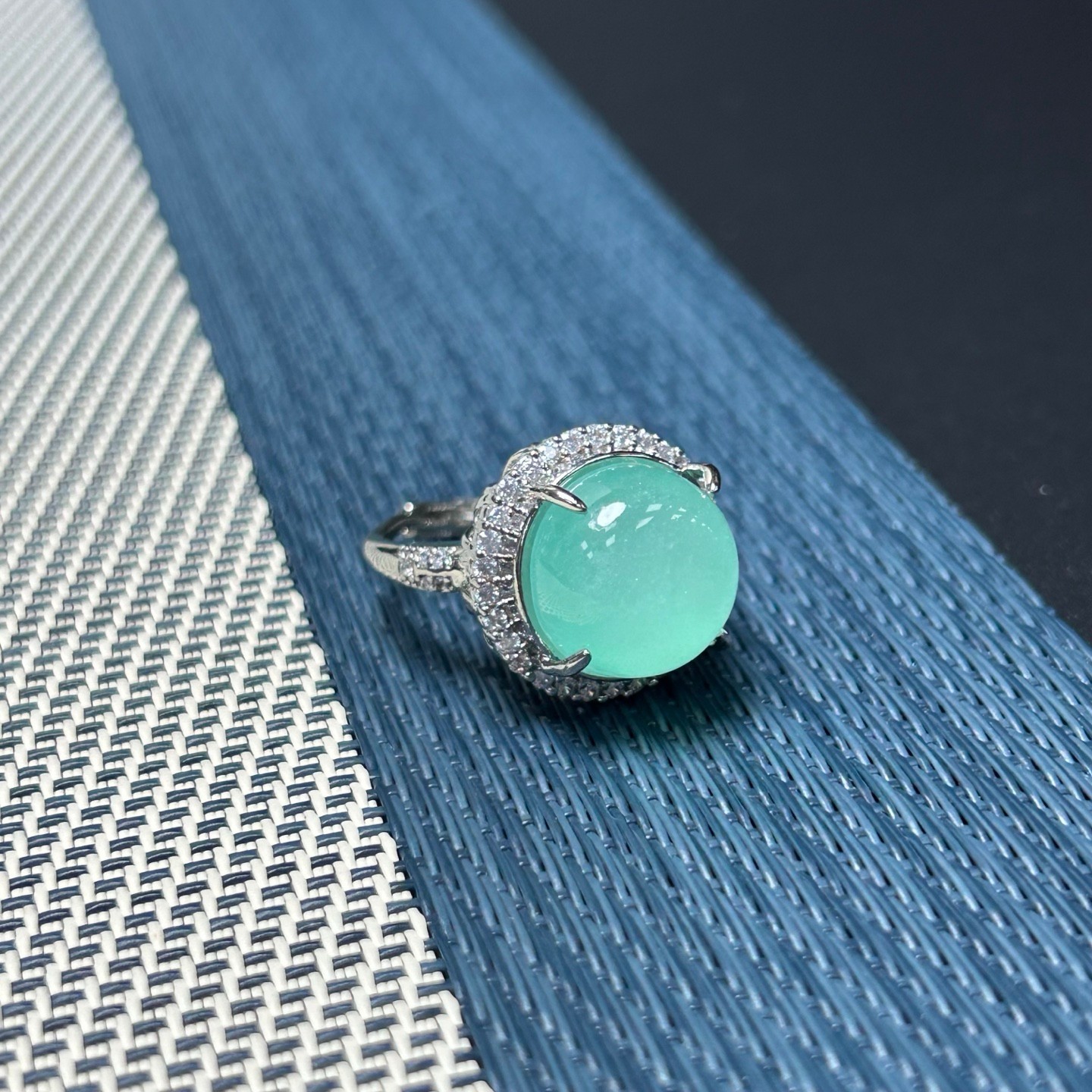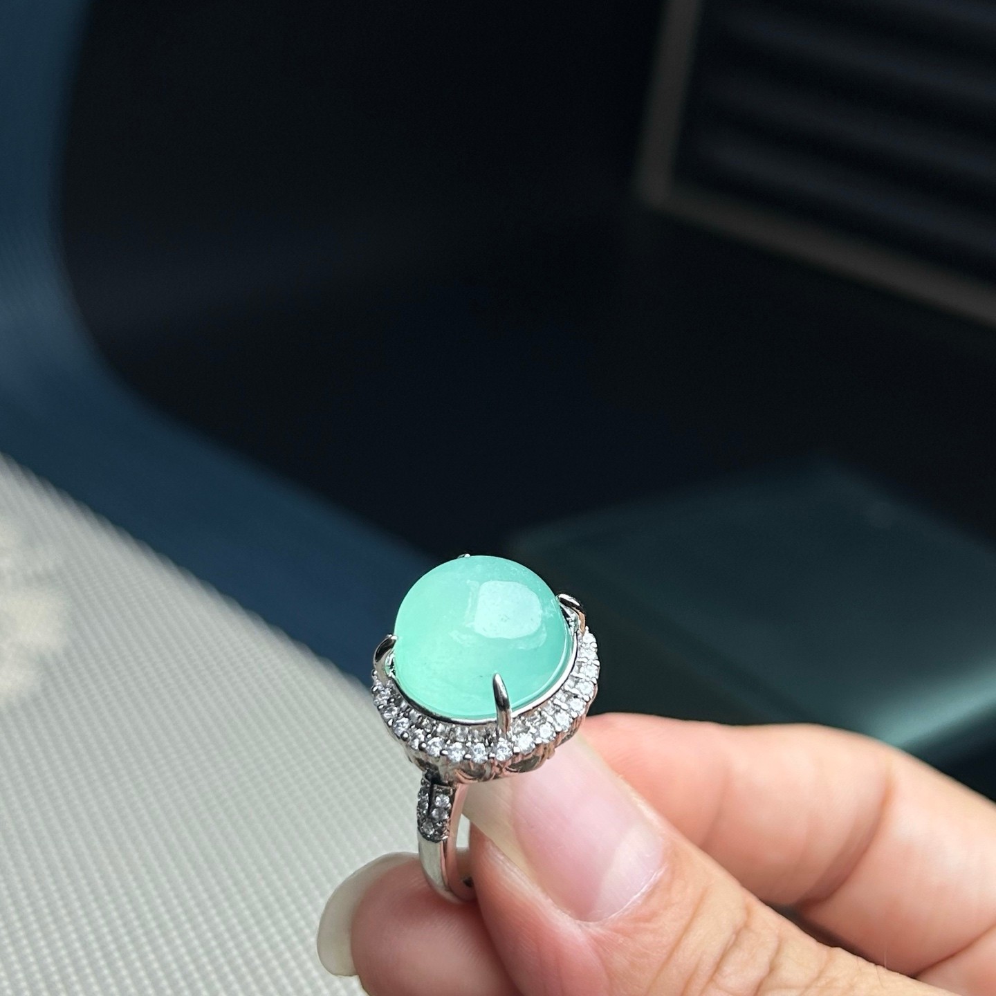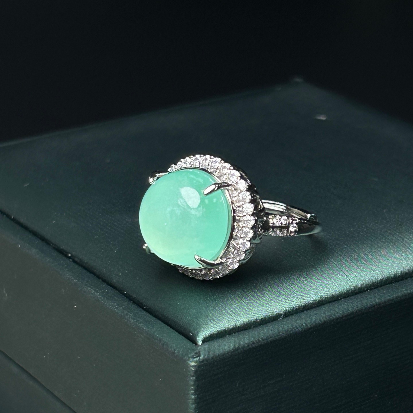 как выглядит Nature inlay Ice Green Burmese Jade Jadeite Amulet Women Egg Ring фото
