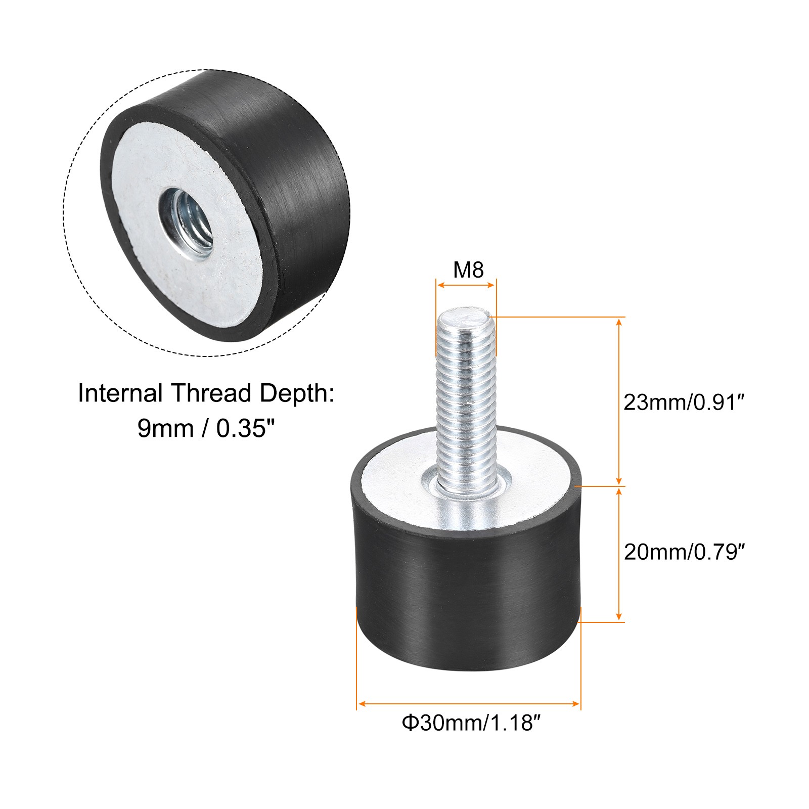 8pcs Rubber Mount M8 Male/Female Vibration Isolator Shock Absorber D30mmxH20mm