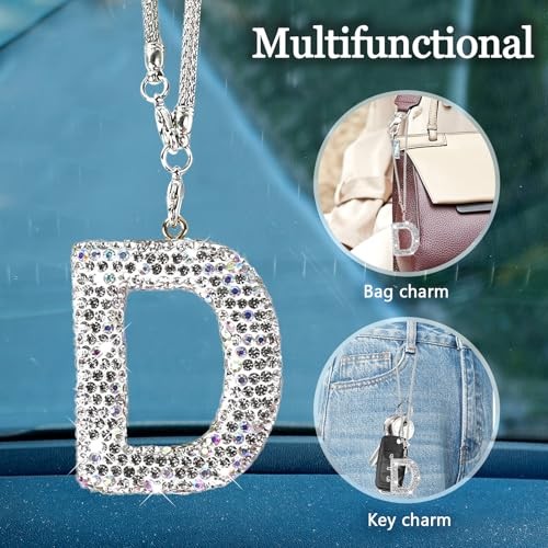 Bling Letter Hanging Ornament for Car Rear View Mirror, Crystal Letter D