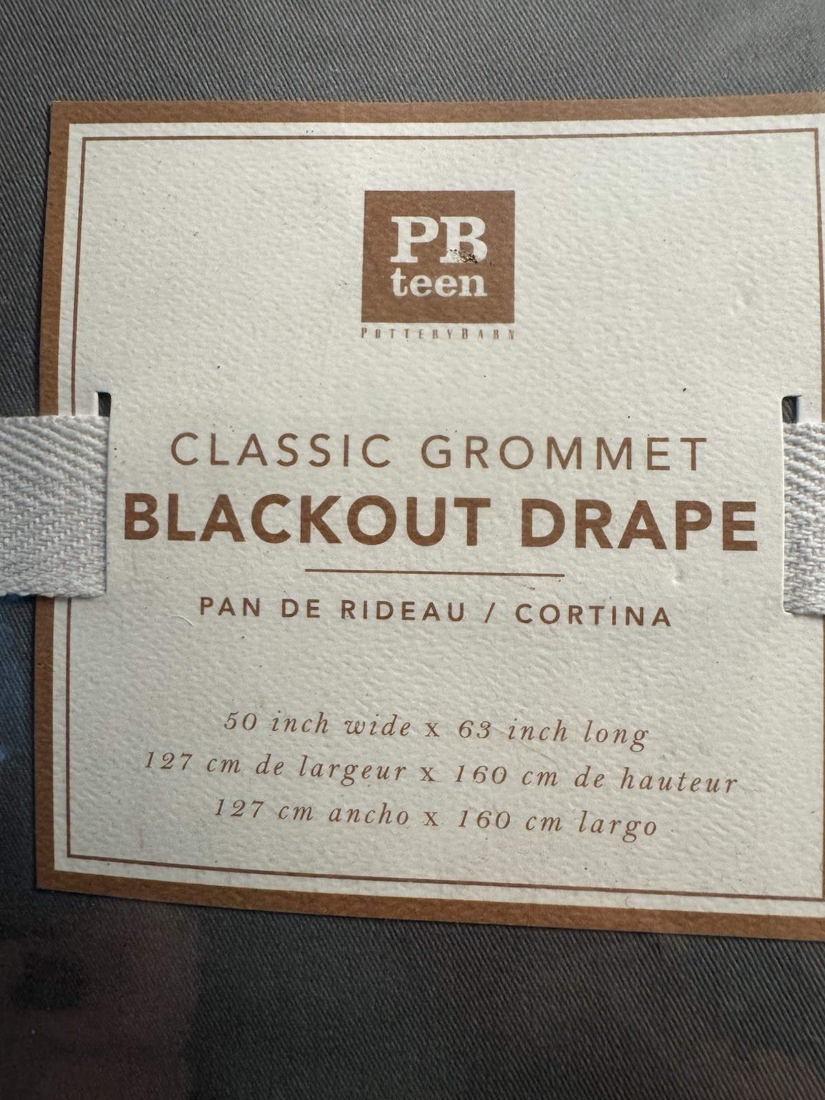 Pottery Barn Teen Classic Grommet Blackout Curtain Drape 50w x 63l Gray Cotton