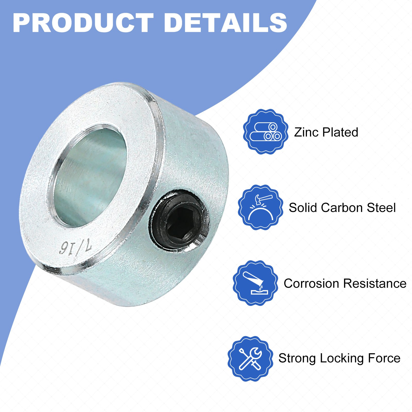 8pcs Set Screw Collars 7/16 Bore Carbon Steel Shaft Collars 7/8 OD