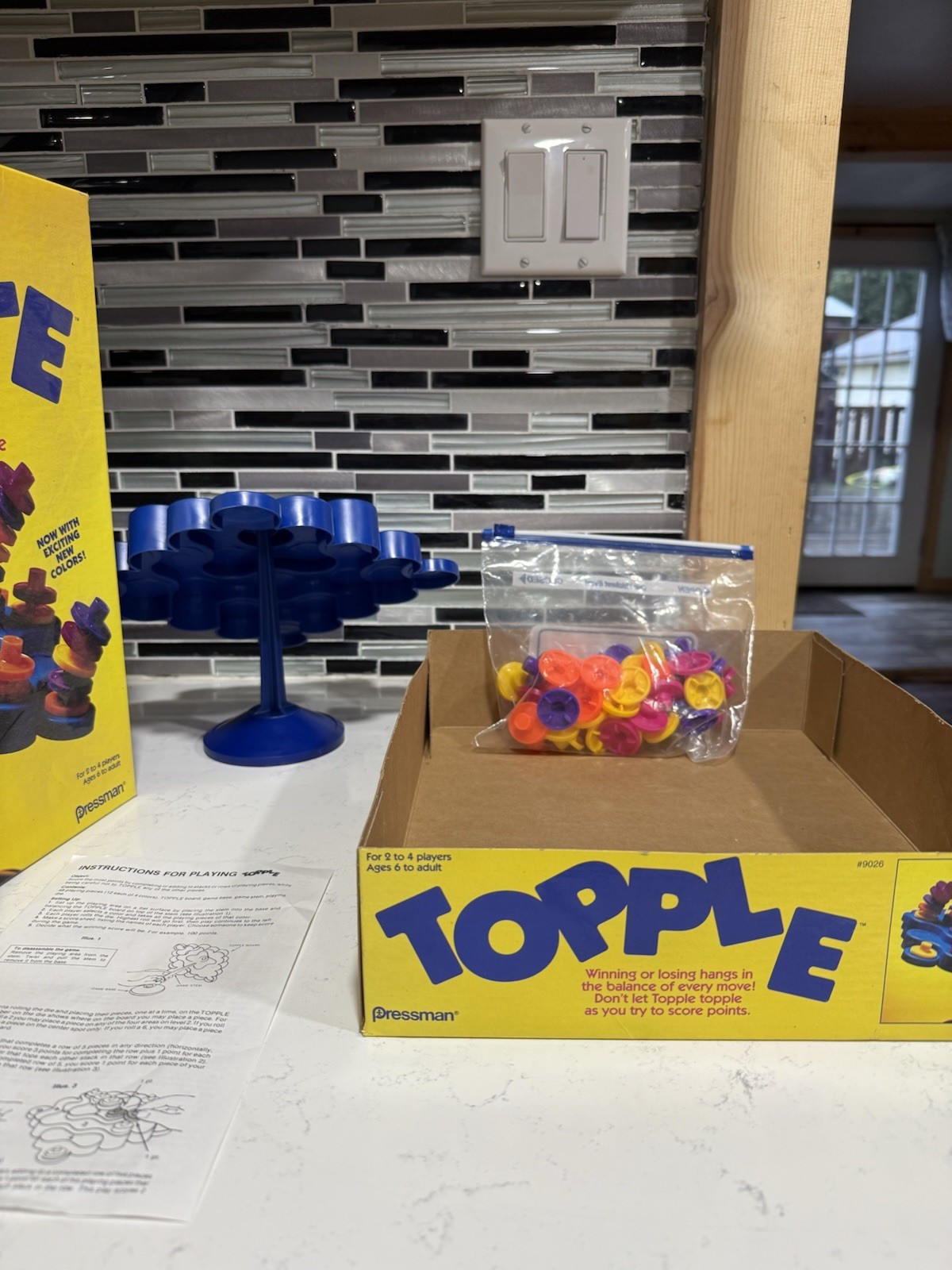 Vintage Topple Board Game Pressman 1990s Family Complete Exciting Colors USA