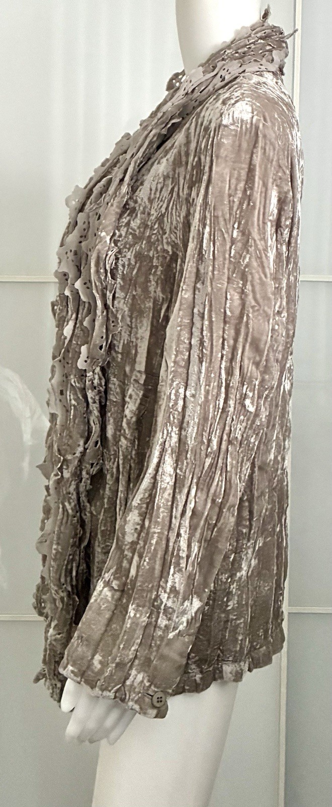 как выглядит Fete Issey Miyake Taupe Gray Pleated Crinkled Velour Jacket Size 2/M фото