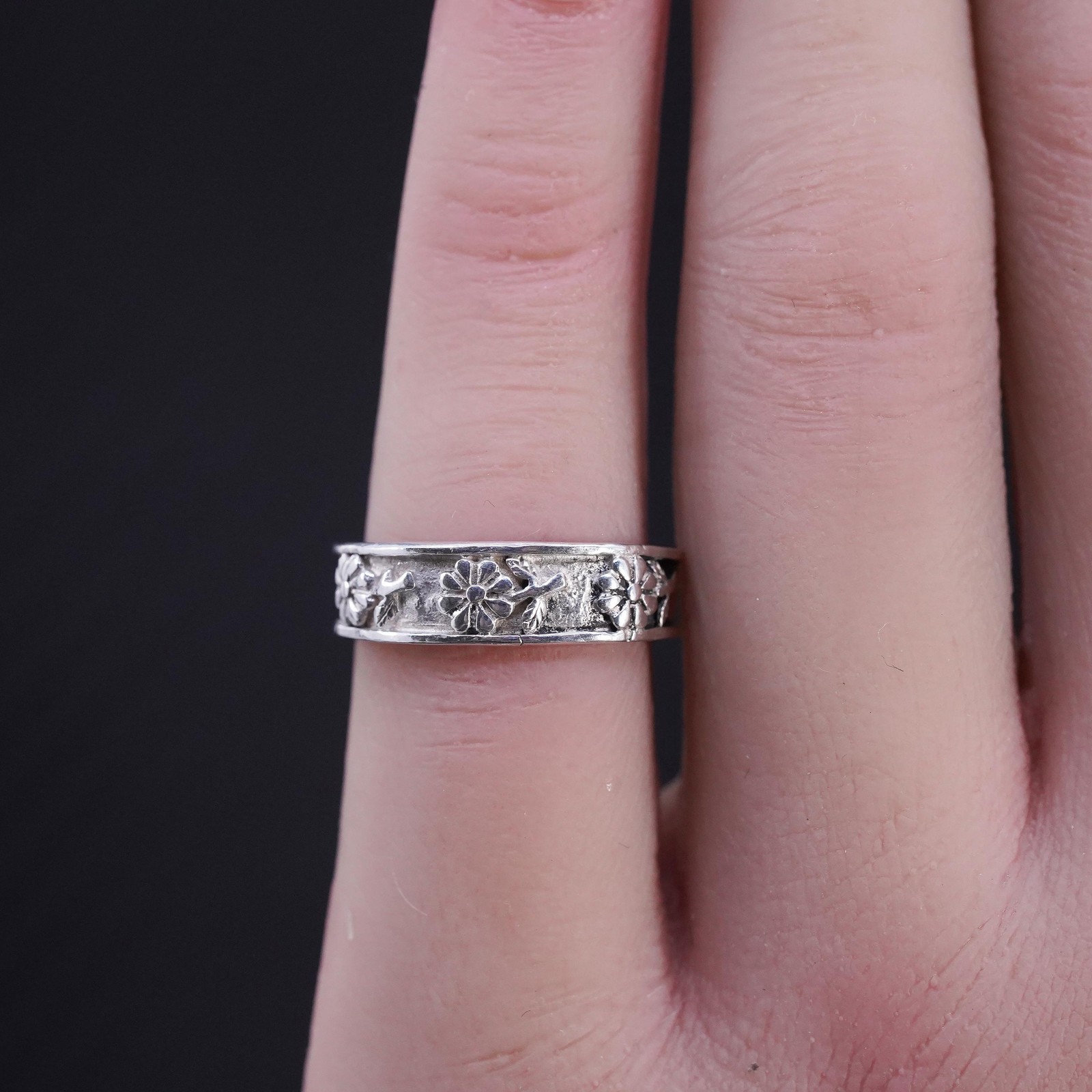 size 3, vintage sterling silver 925 handmade sunflower flower open band ring