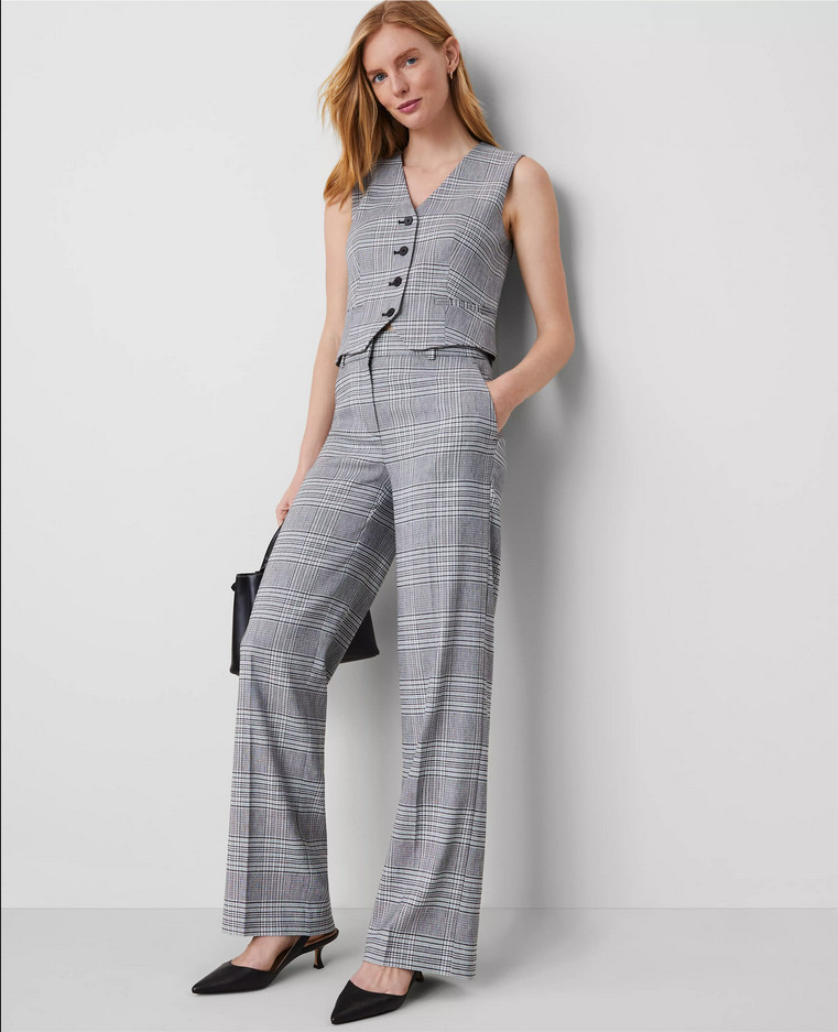 как выглядит NEW ANN TAYLOR 139 BLACK WHITE PLAID CURVY FIT STRAIGHT LEG PANTS SZ 8P фото