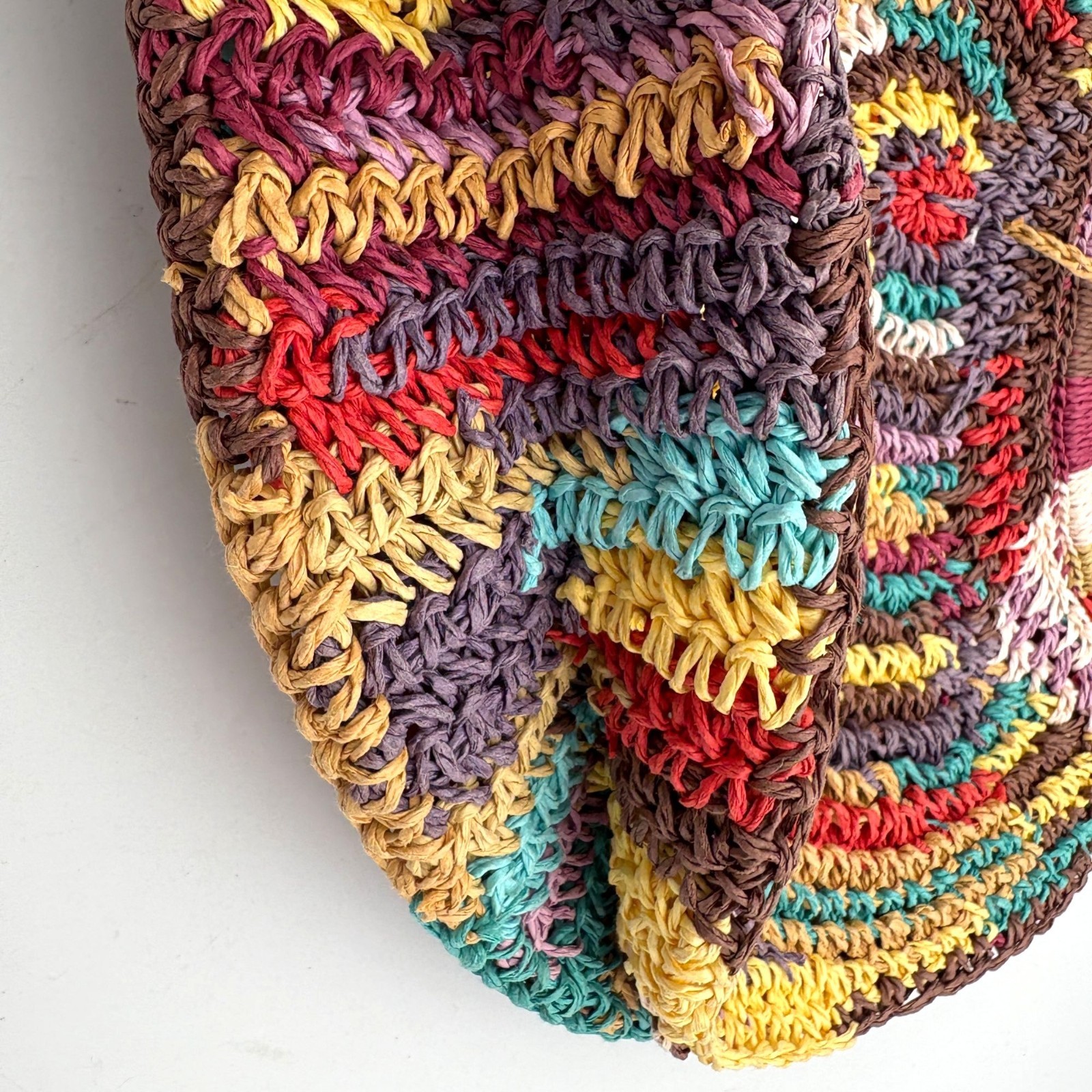Vintage Multicolor Woven Straw Boho Circle Handbag With Round Handles SEE