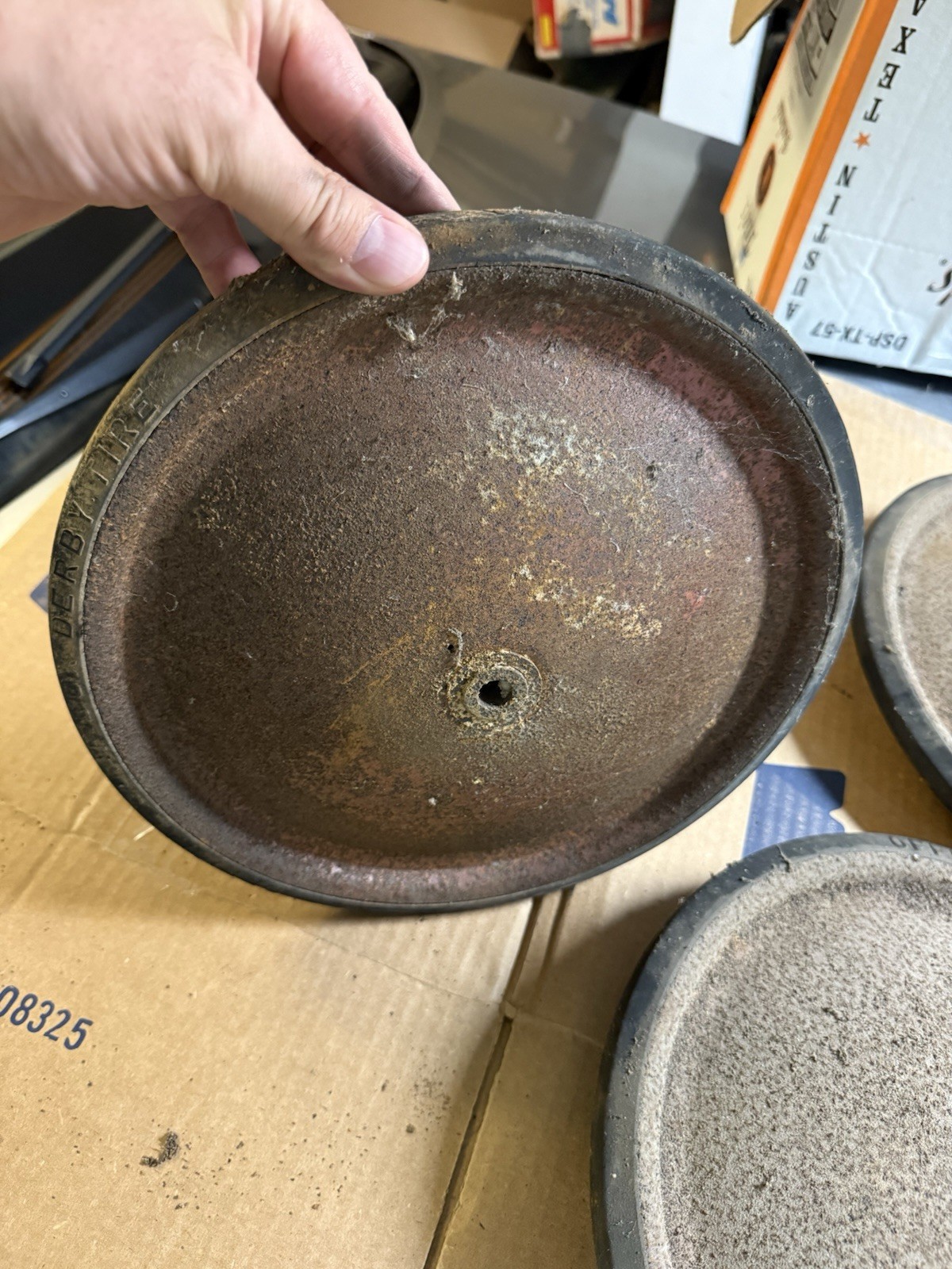 как выглядит SET OF 4 12 ANTIQUE OFFICIAL SOAP BOX DERBY RUBBER TIRES WHEELS фото