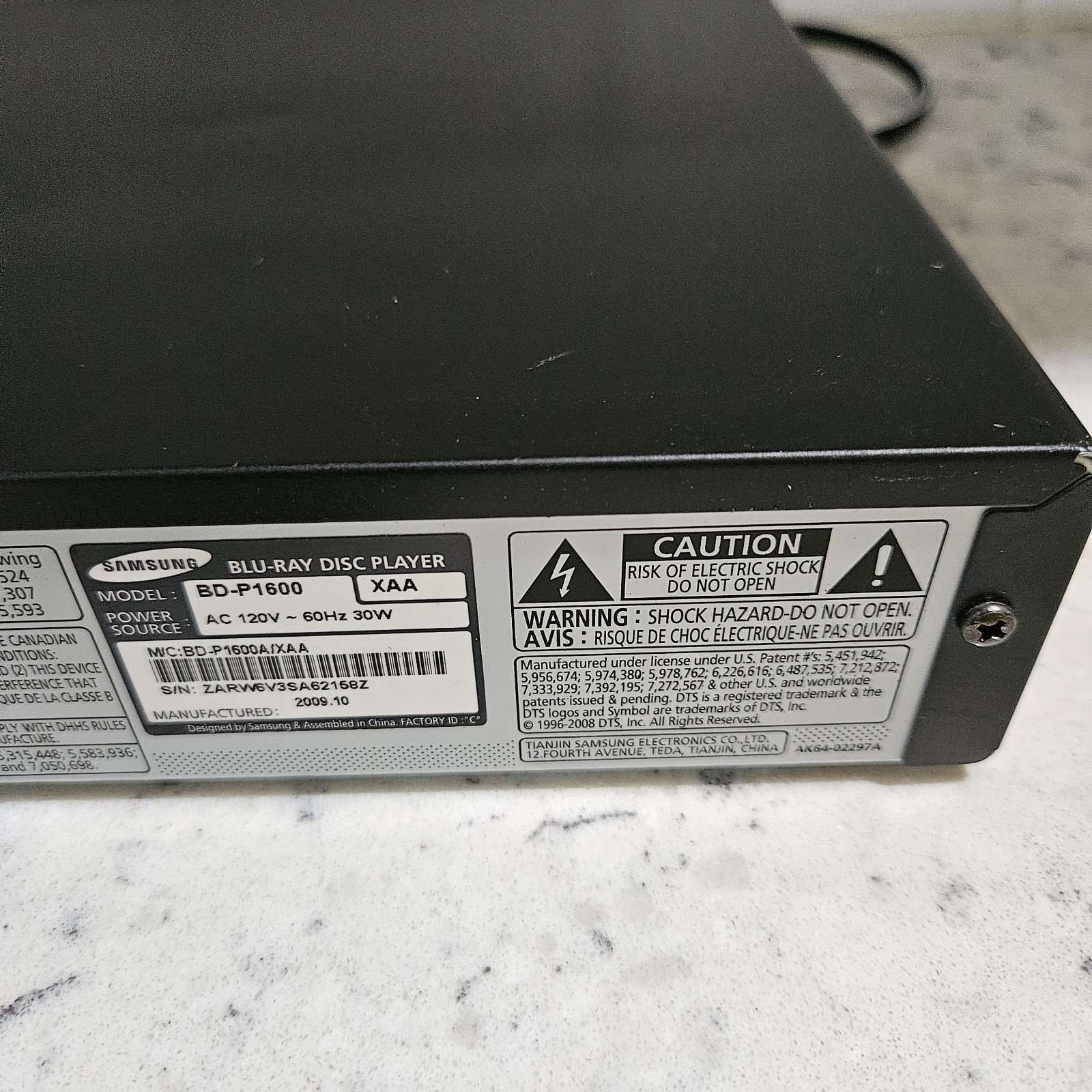Samsung Blu-ray Disc Player BD-P1600, Full HD, Dolby DTS Audio, No Remote