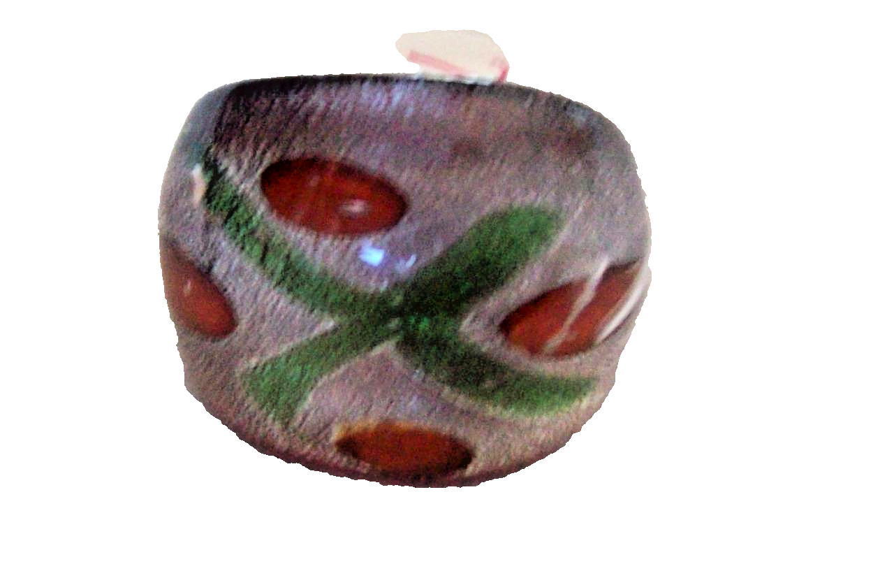как выглядит DiCHROIC ART Glass Ring DOME Metallic Green X ORANGE/ Silver 7 3/4 RETRO 90