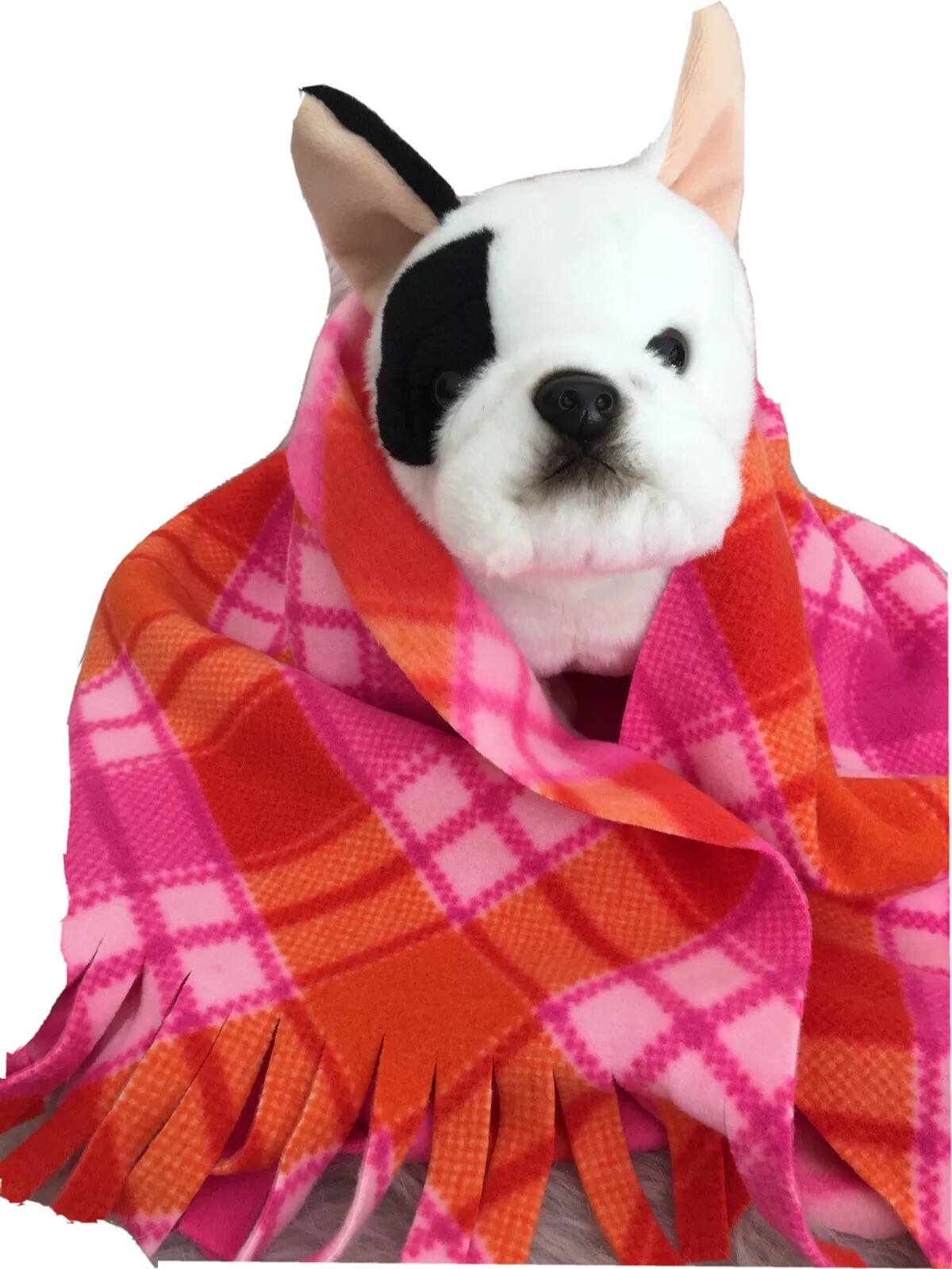 DOG SIZE FLEECE BLANKETS, Pet Blanket Travel Throw Cover, PINK ORANGE PLAID