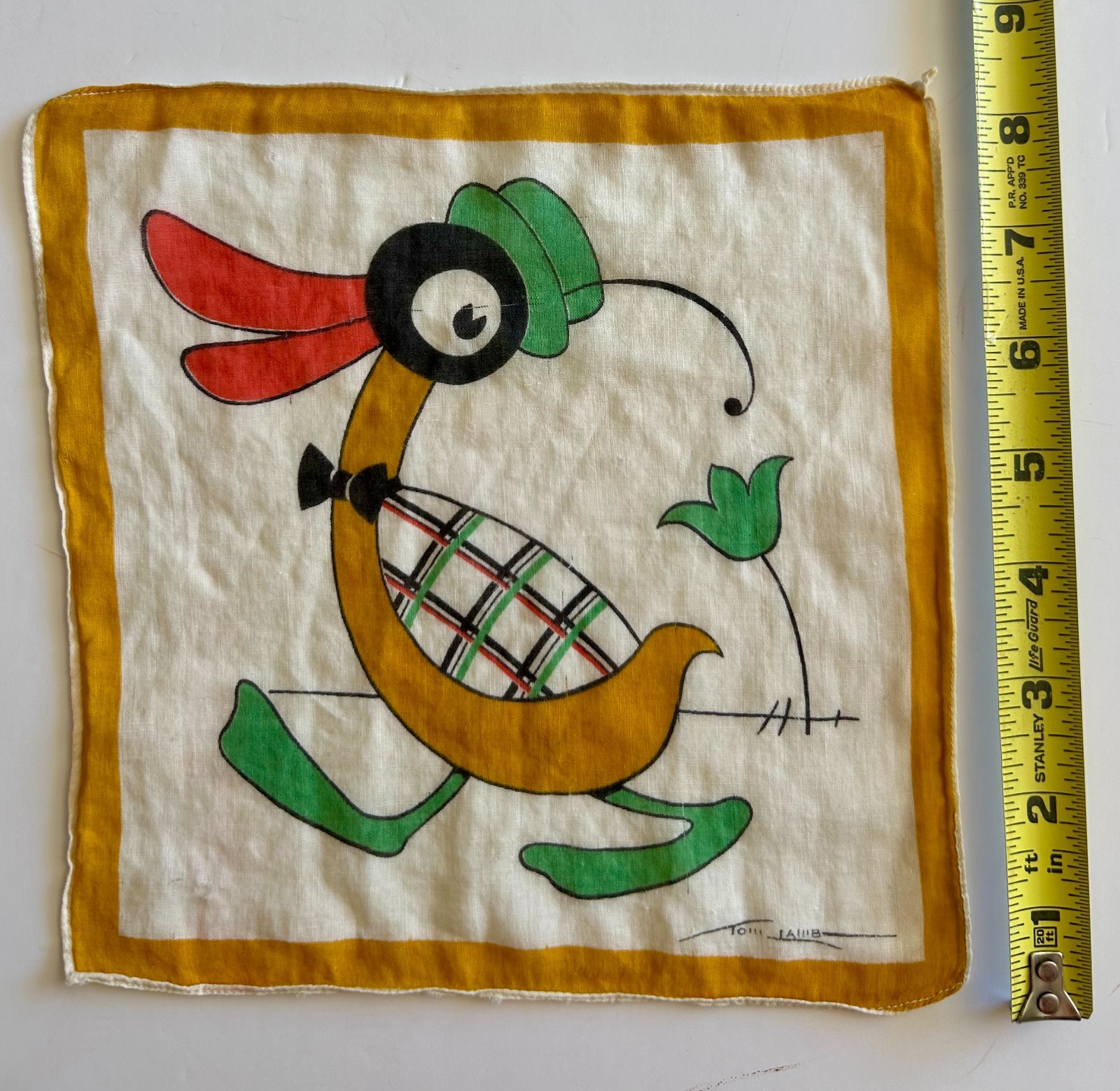 Handkerchiefs lot of 6 vintage small size embroidery applique Tom Lamb few flaws