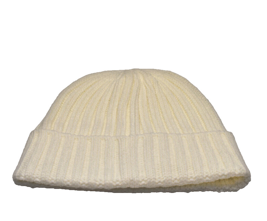 DKNY Ribbed Knit Beanie Hat Cream New