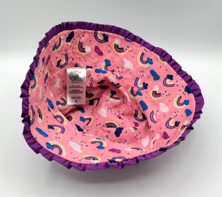 как выглядит UV Skinz Reversible Bucket Hat Size 6 Purple Stripes Pink Rainbow Ruffle SPF 50 фото