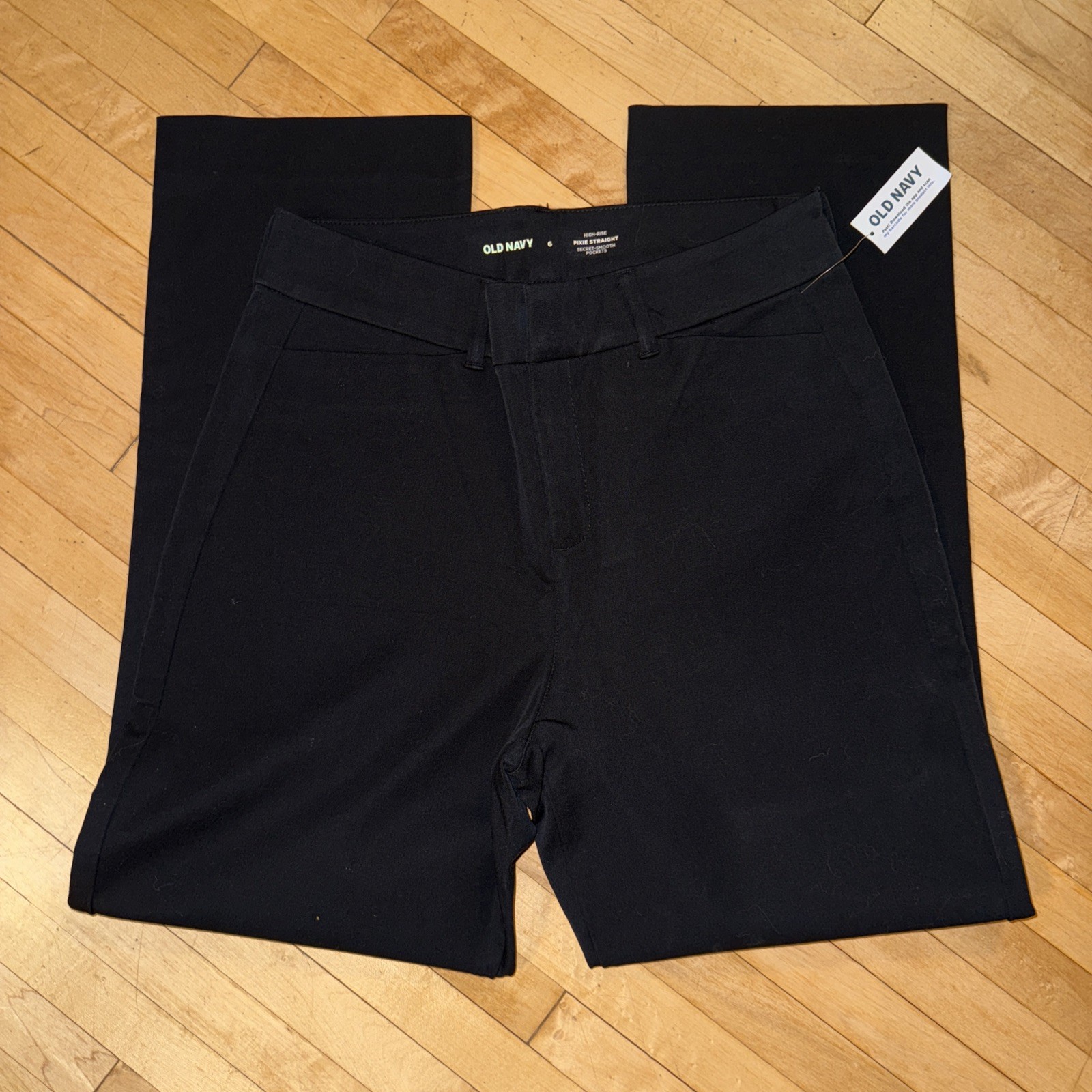 NWT Old Navy Black High-Rise Pixie Straight Pants Secret Smooth Pockets Sz 6