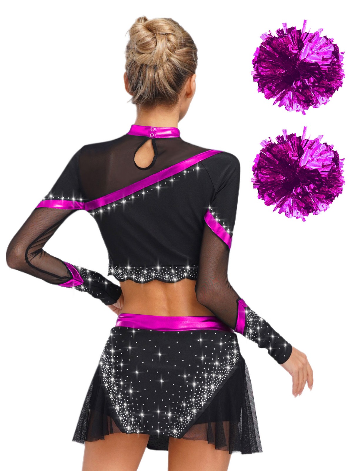 Women Cheerleading Uniform Skating Skirt With Safet Letter Print And Rhinestone