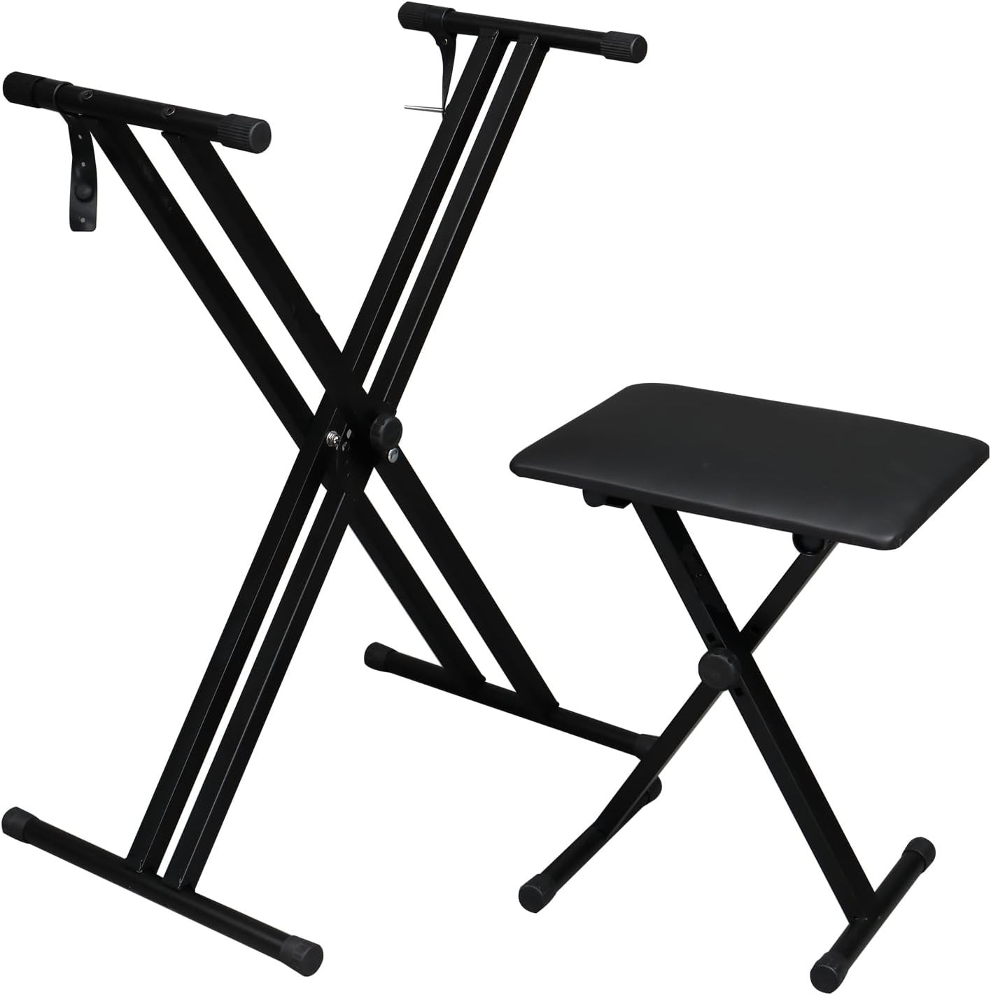 Heavy Duty Piano Keyboard Stand and Bench, Portable Universal Musical Keyboard S
