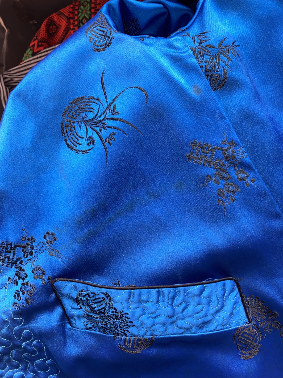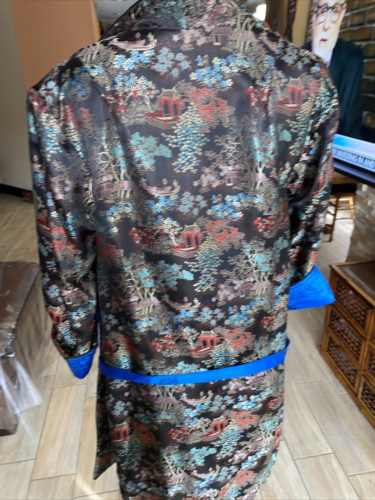 как выглядит Vintage ASIAN Reversible Kimono EMBROIDED FLORAL HOMES CANOE RARE ybt фото