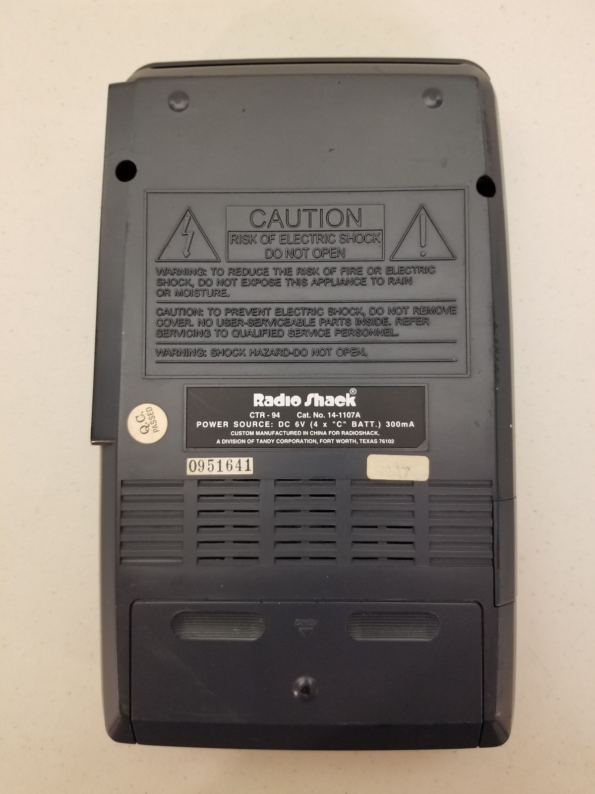 Vtg. RADIO SHACK CTR-94 Portable Cassette Tape Recorder w/Built in Mic WORKS