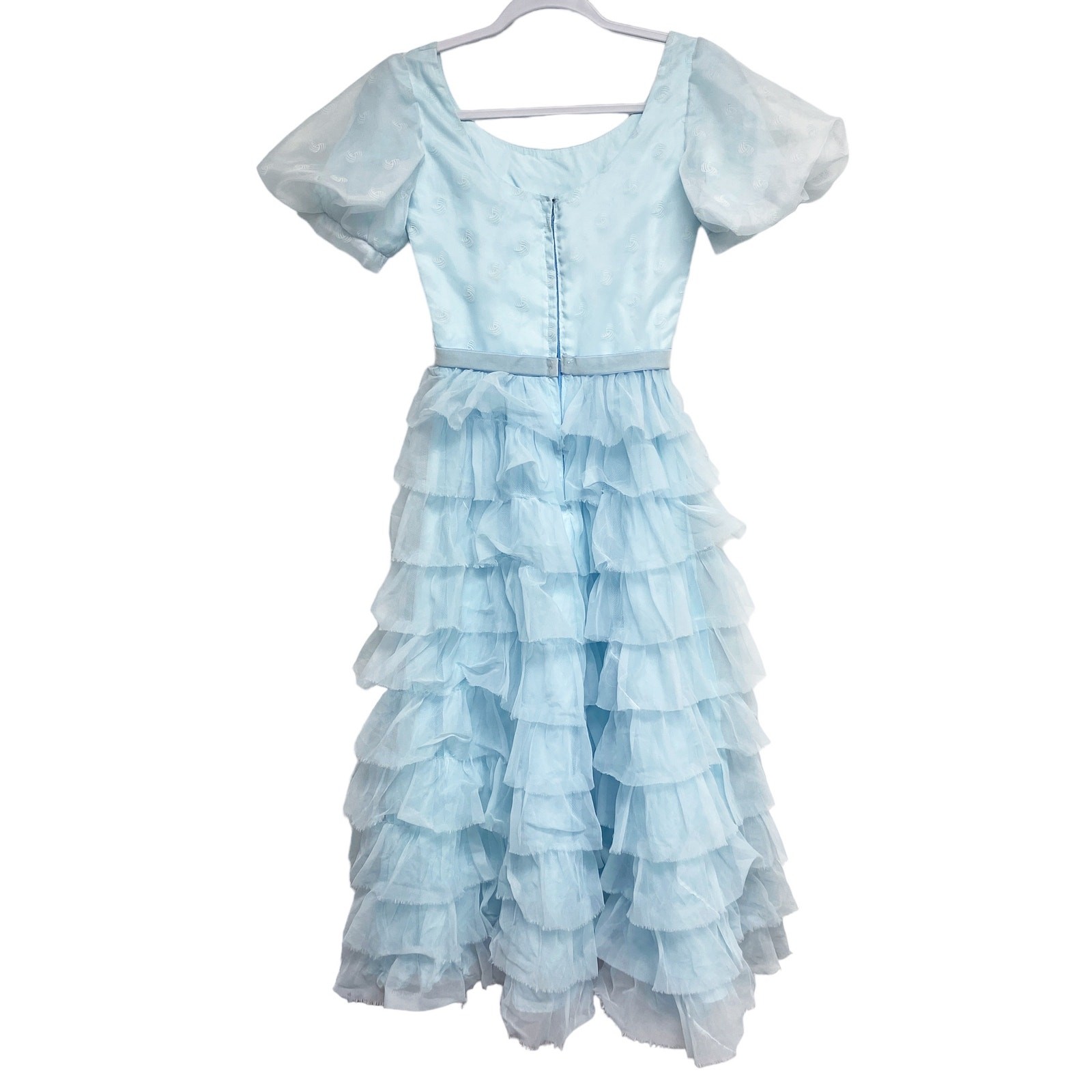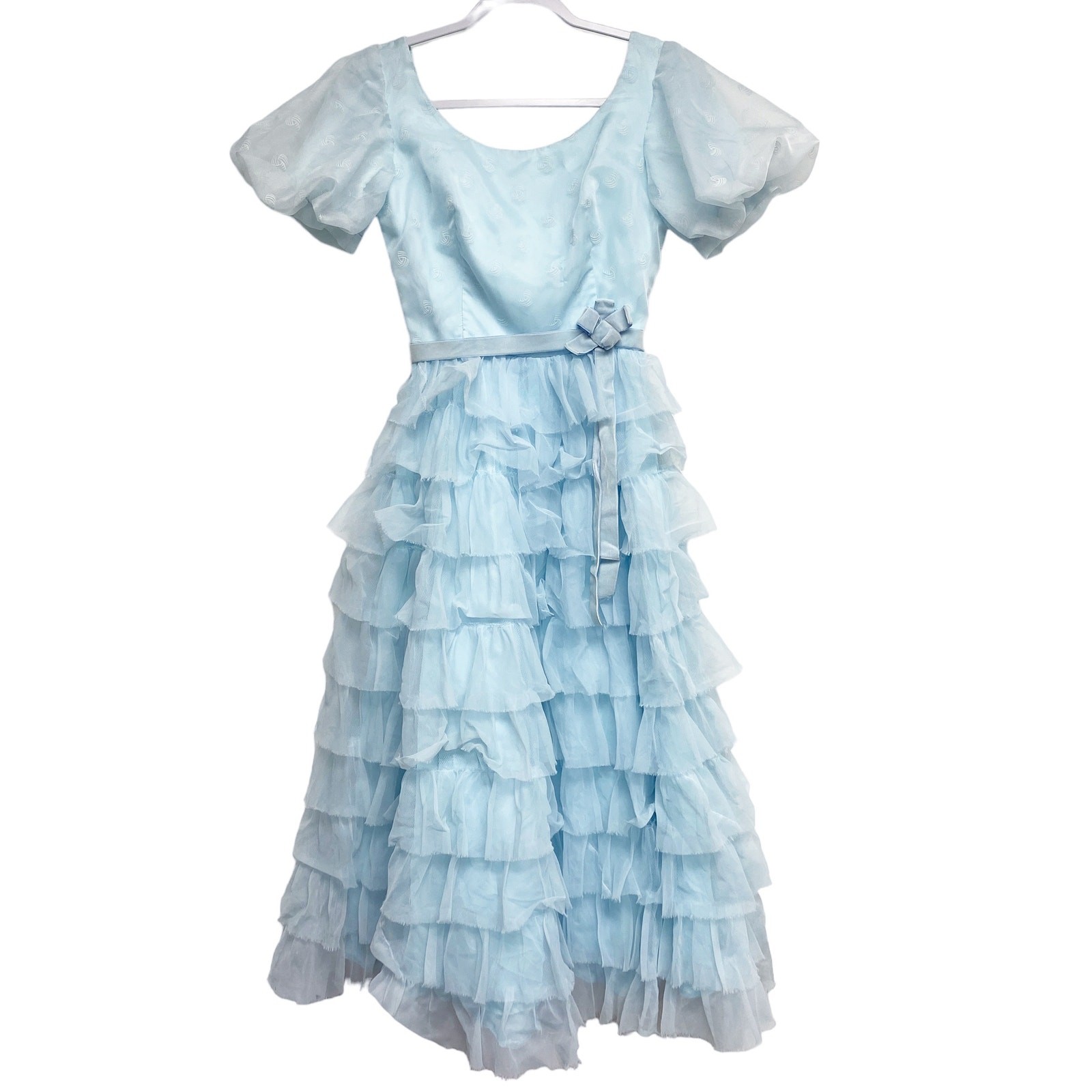Vintage Nadine Blue Ruffle Tiered Short Puff Sleeve Party Dress