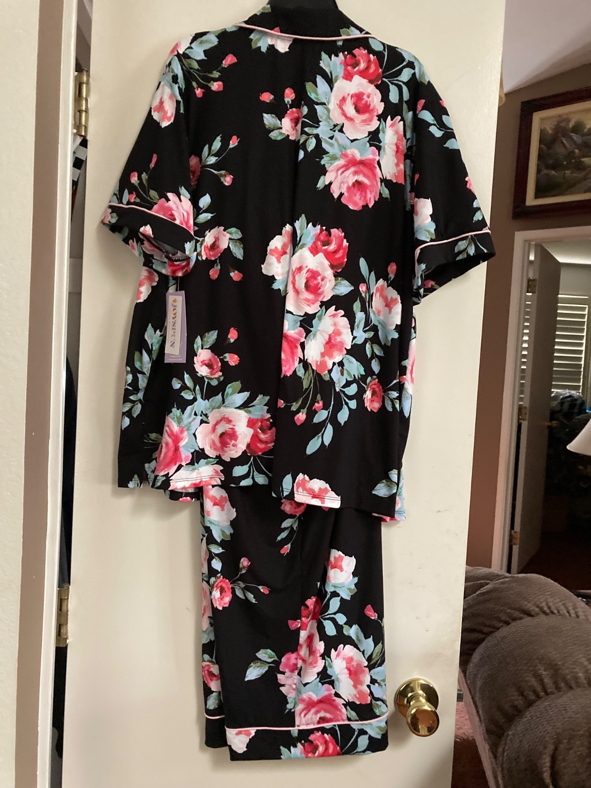 Joyspun Notch Collar 2-pc. Pajama Set Black Floral Women's Size XS NWT