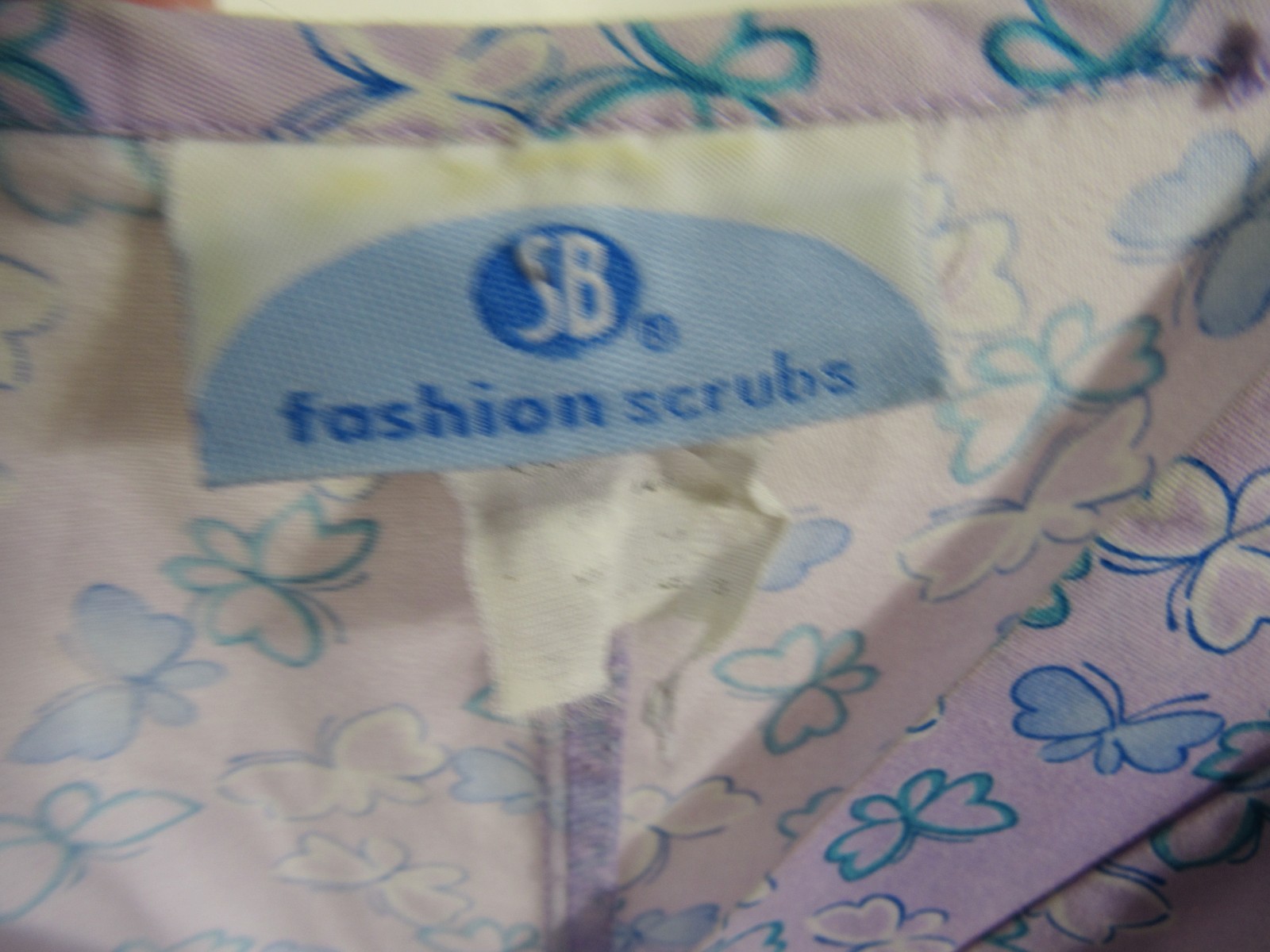 как выглядит Fashion Scrub Scrub Top Size M Purple Butterflies V Neck Pockets фото