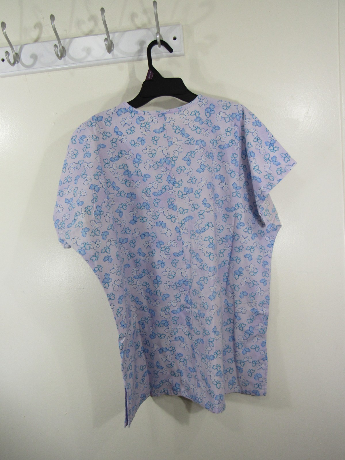 Fashion Scrub Scrub Top Size M Purple Butterflies V Neck Pockets