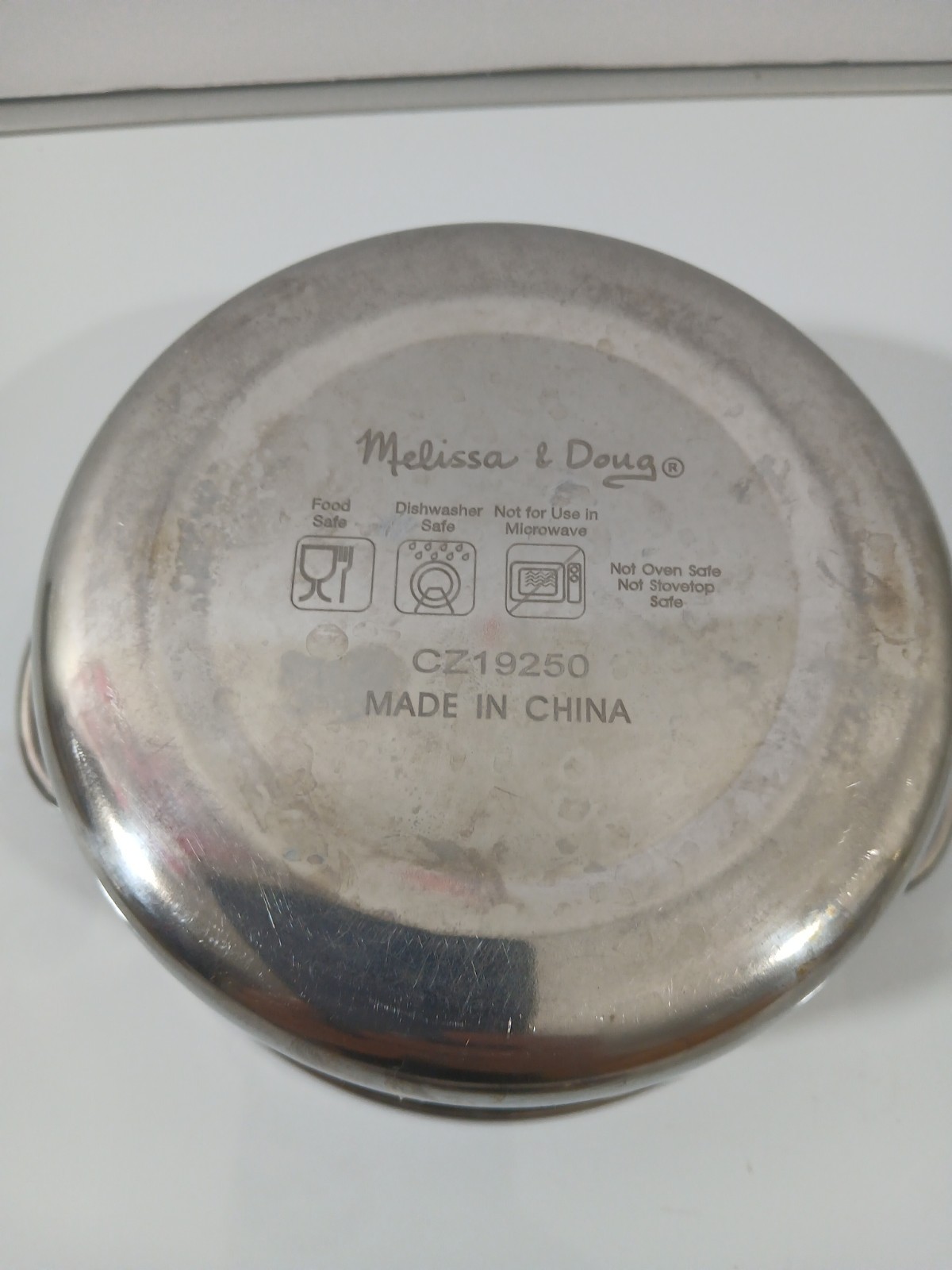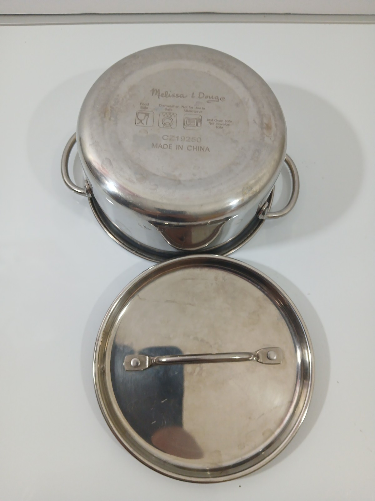 как выглядит Melissa Doug Stainless Steel Play Set  Pot, Pan Colander 3-Piece фото