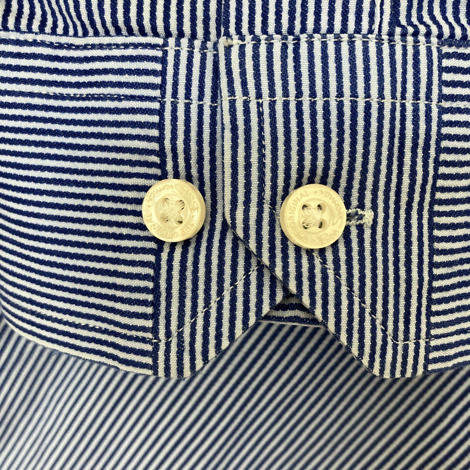 как выглядит Ben Sherman Blue White Pinstripe Button Up LS Mens Shirt Cotton 18 36/37 XXL фото