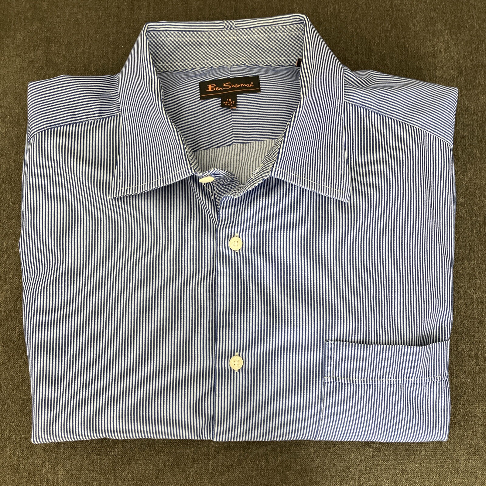Ben Sherman Blue White Pinstripe Button Up LS Mens Shirt Cotton 18 36/37 XXL