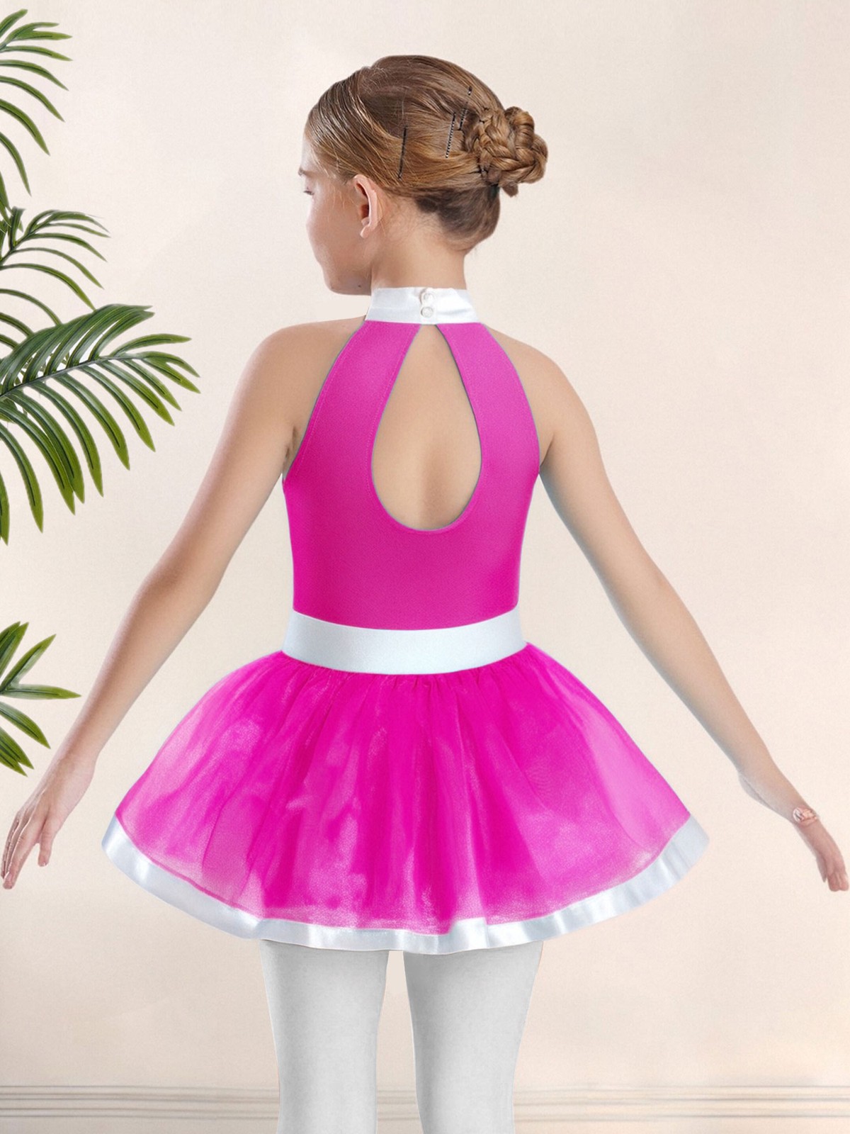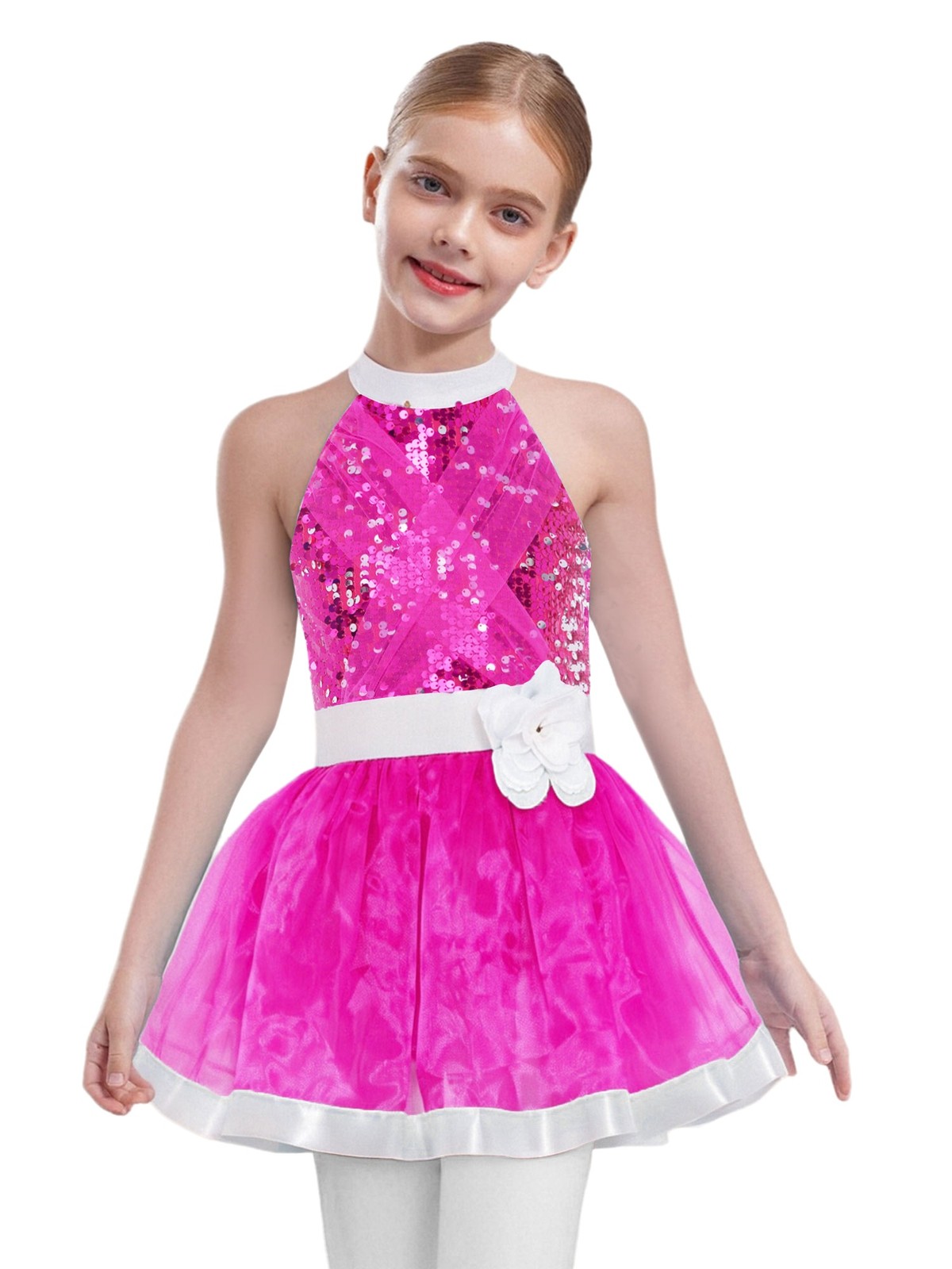 Kids Girls Dresses Tulle Tutu Dress Sleeveless Dancewear Latin Sequins Leotard