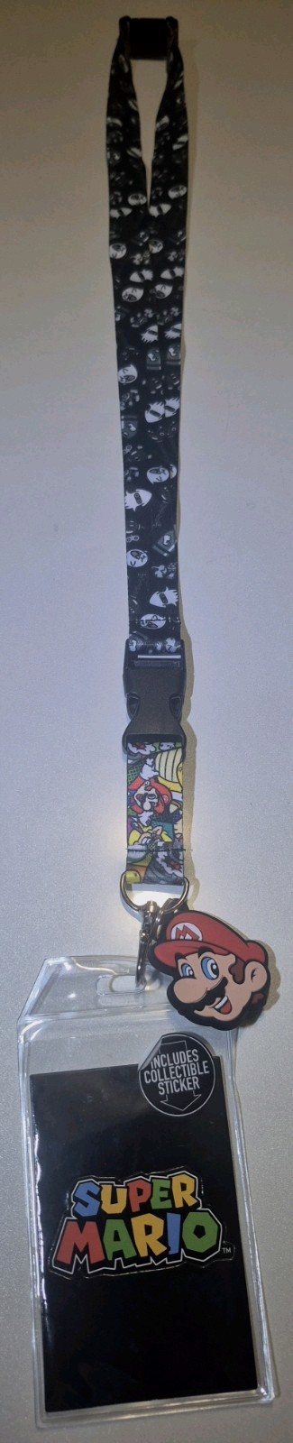 Nintendo Super Mario Lanyard ID Badge Holder Reversible Lanyard w/Charm Sticker