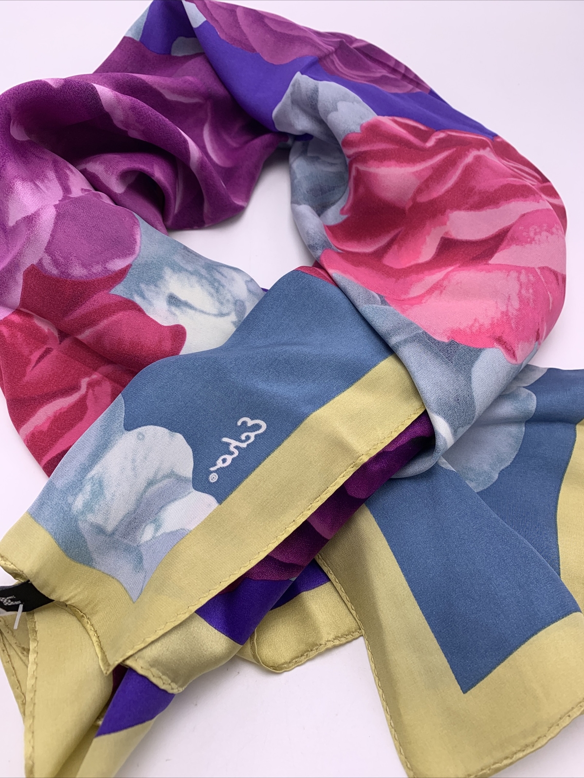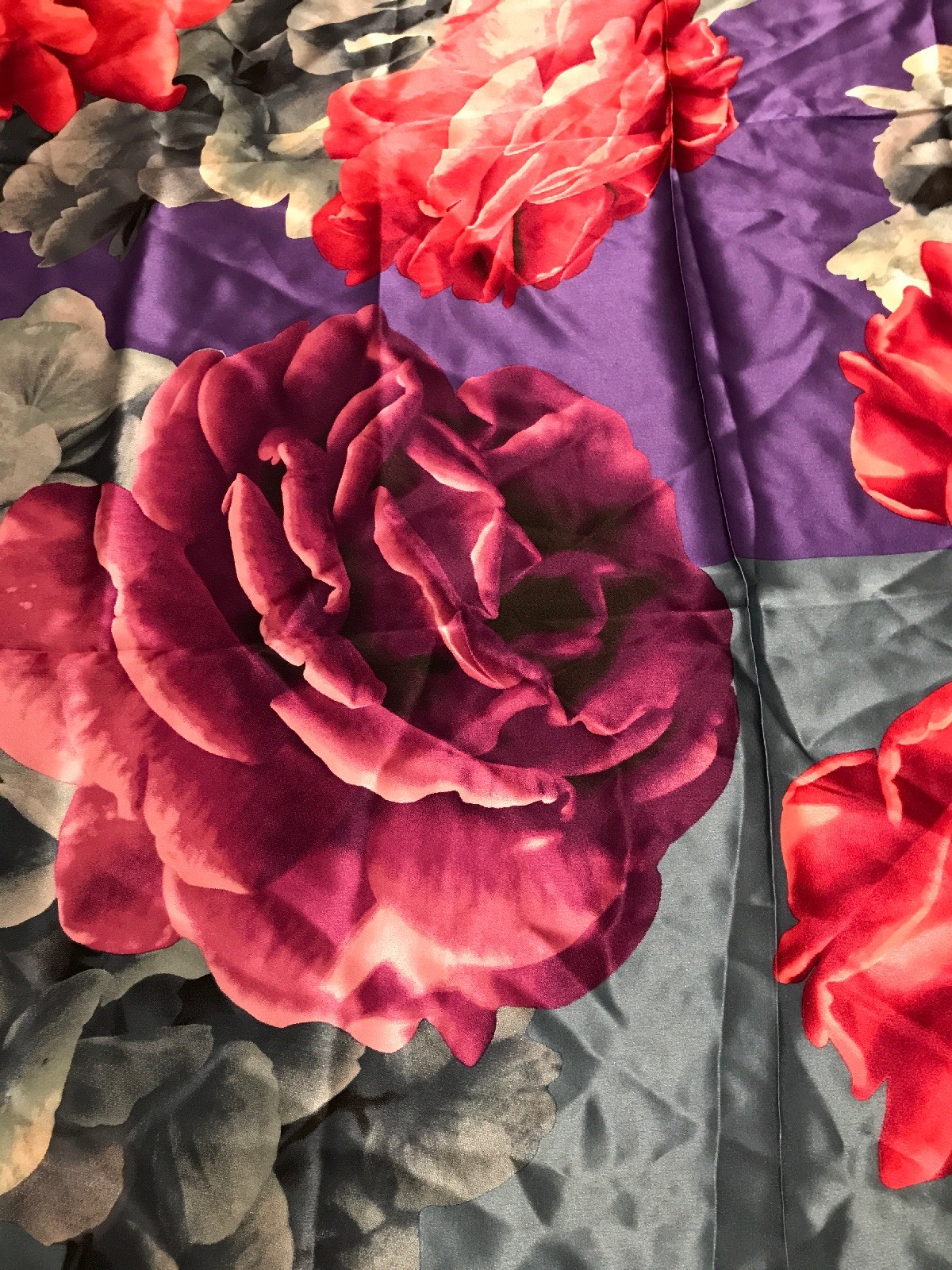 NWT Echo silk scarf 38 Square Multi Colr roses K515
