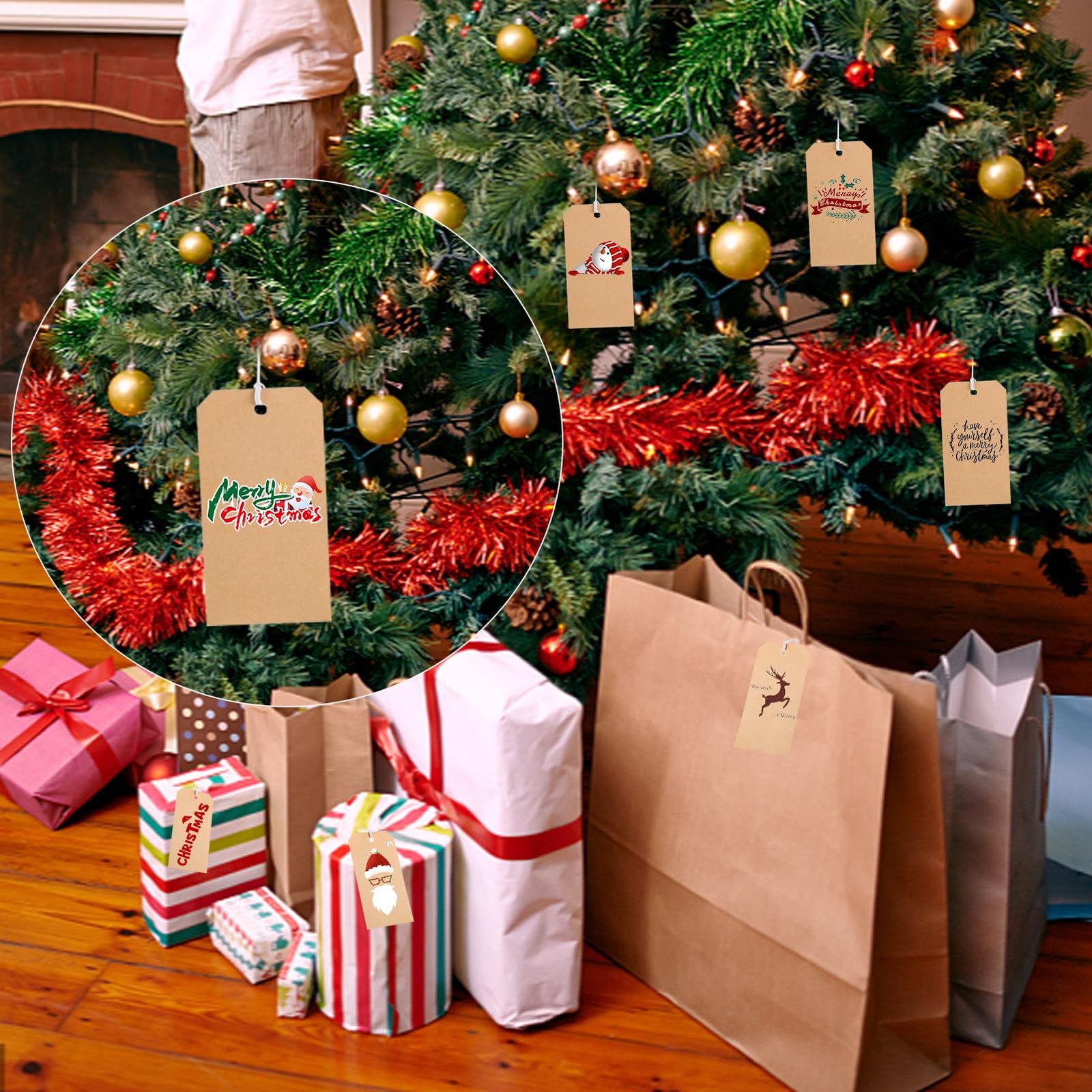 как выглядит 200 Pack Kraft Tags with String Attached,Large Marking Tags Paper Hanging Tag... фото