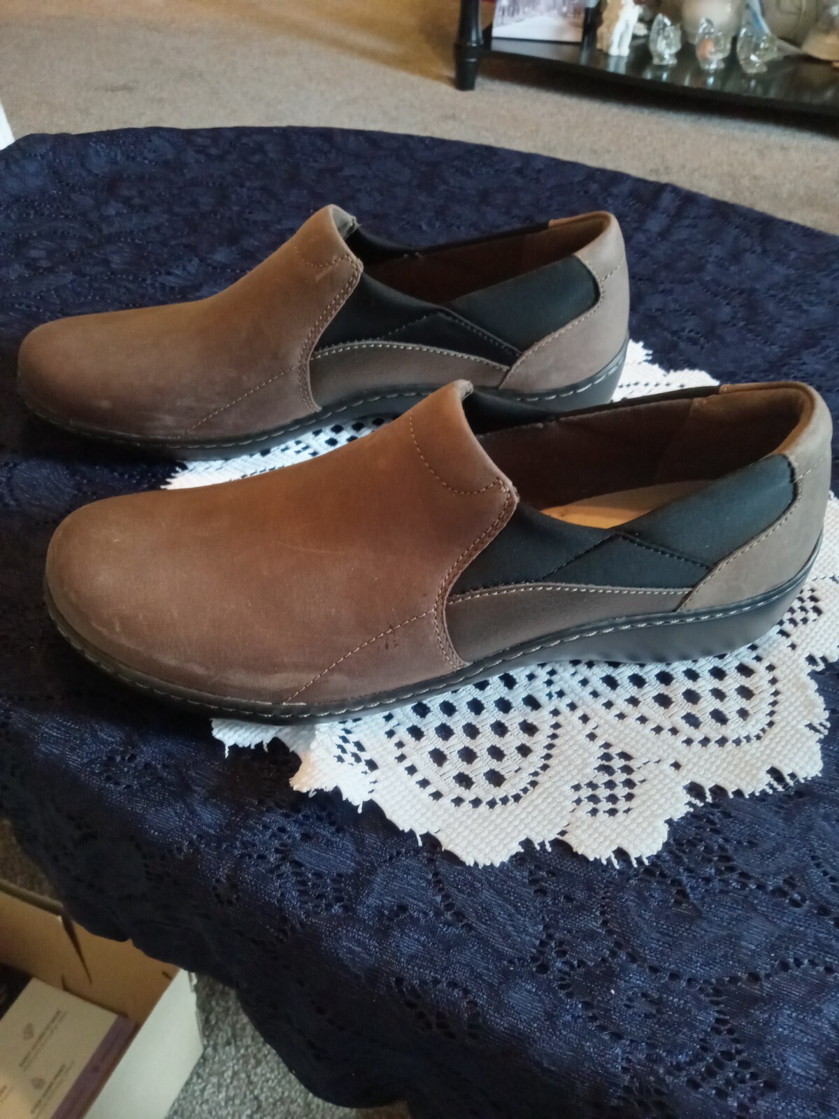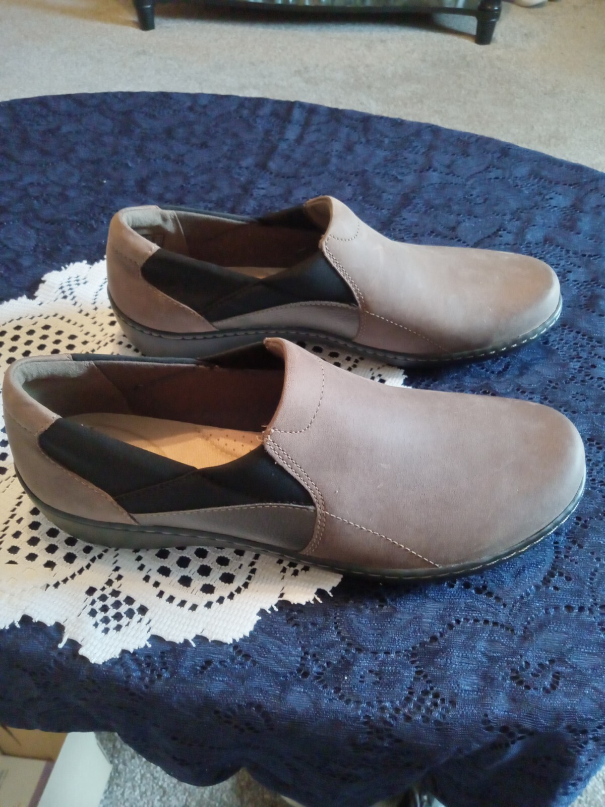 как выглядит Clarks Womens Loafer Dark Taupe Size 8 1/2"M фото