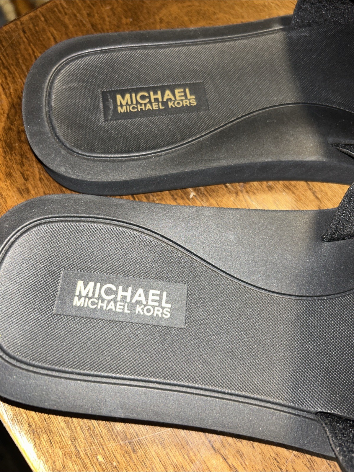AUTHENTIC MICHAEL KORS WADE SLIDES BROWN MK SIGNATURE LOGO SIZE 6. NEW