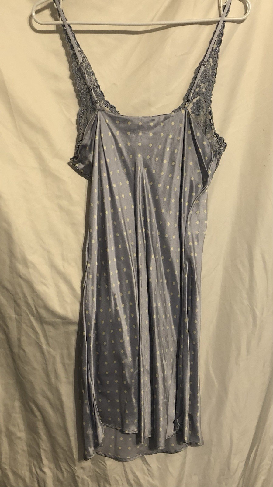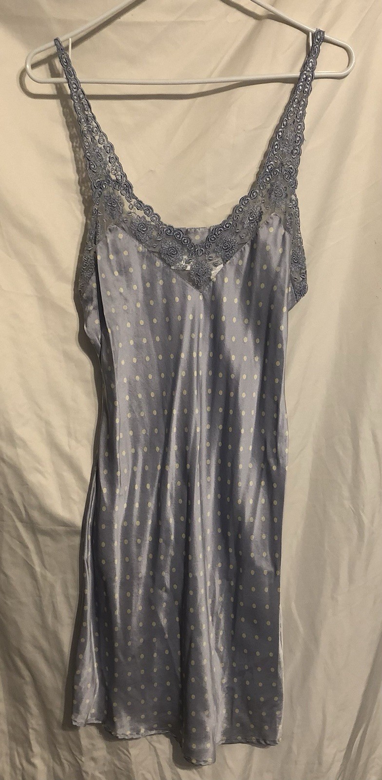 как выглядит Vtg. Silkscreen 100 Silk Slip Dress Polkadots Y2K Sz. L 7 фото