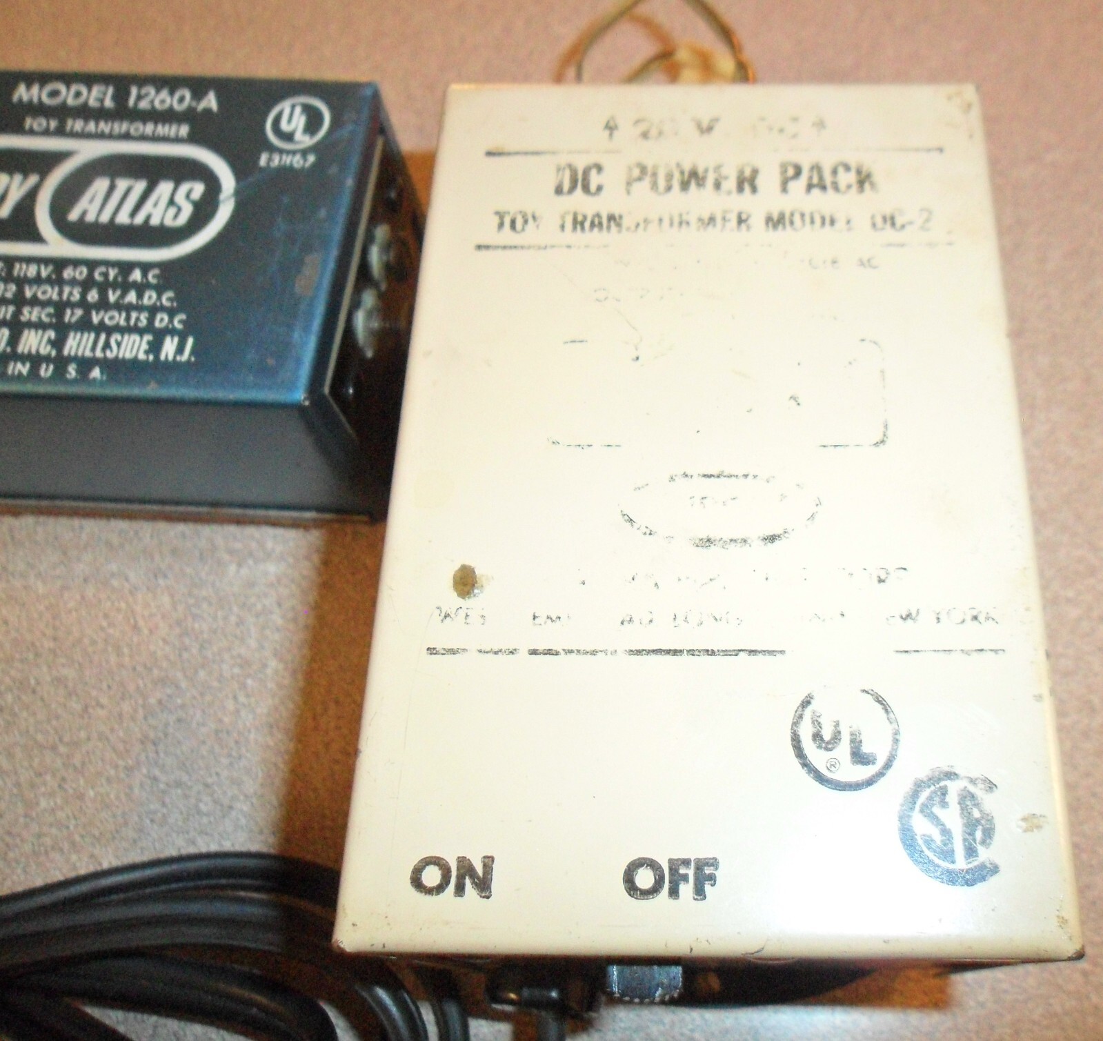 2 Vintage TOY TRANSFORMERS Model 1260-A By Atlas, 20 Volt DC Power Pack, AURORA