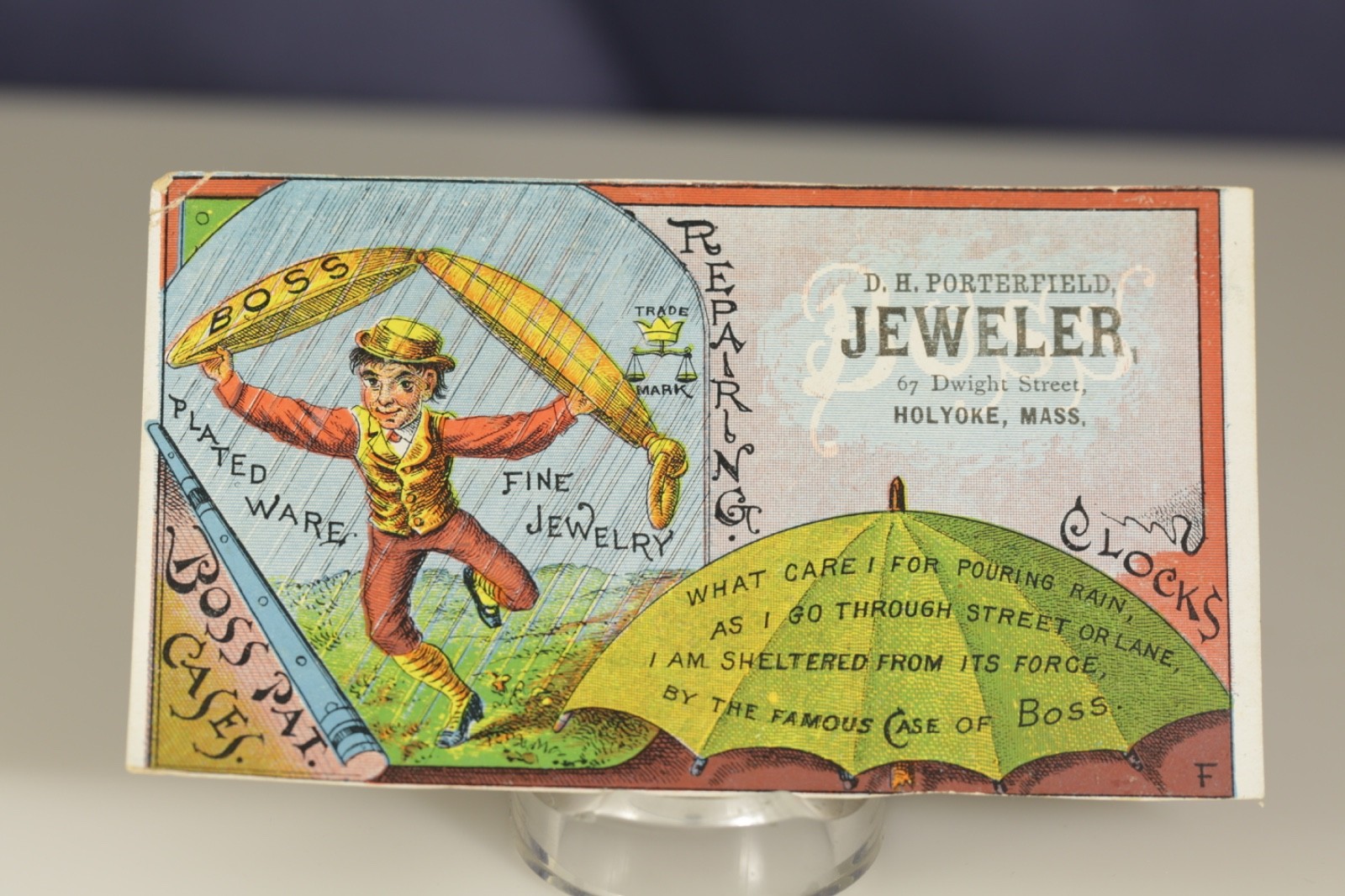 • "Give Me Shelter"BOSS POCKET WATCH CASES TradeCard D.E. PORTERFIELD, HOLYOKE. MA